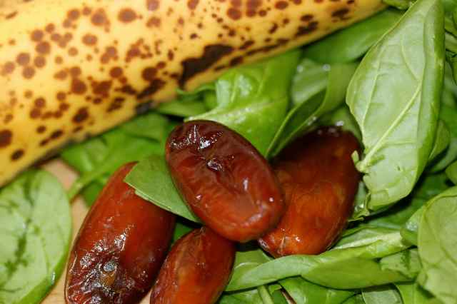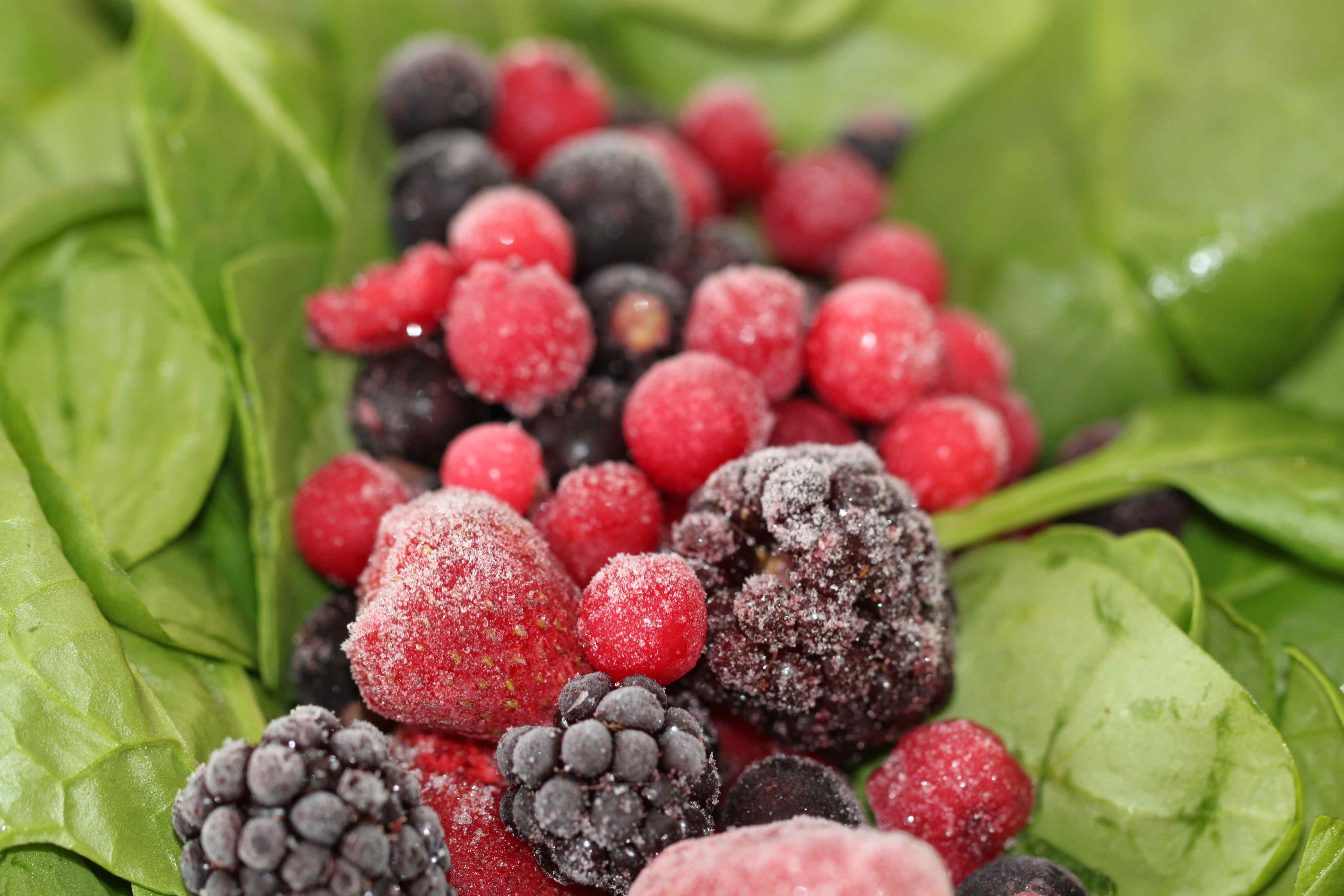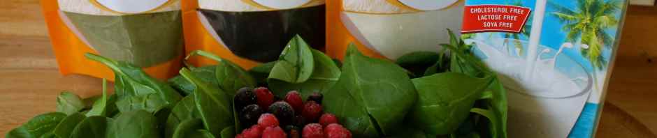 a green smoothie made with a huge handful of spinach and frozen berries,