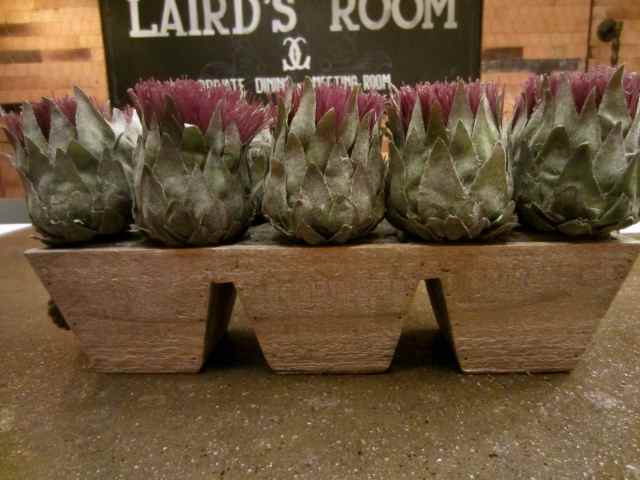 We did have a little peak about the place.  Each room was very individual.  One room, Laird’s Room, had a polished concrete table and wood panelled walls but not in a traditional sense.  They looked like wood from wine crates and were covered in chicken wire with some barrel ends mixed in.