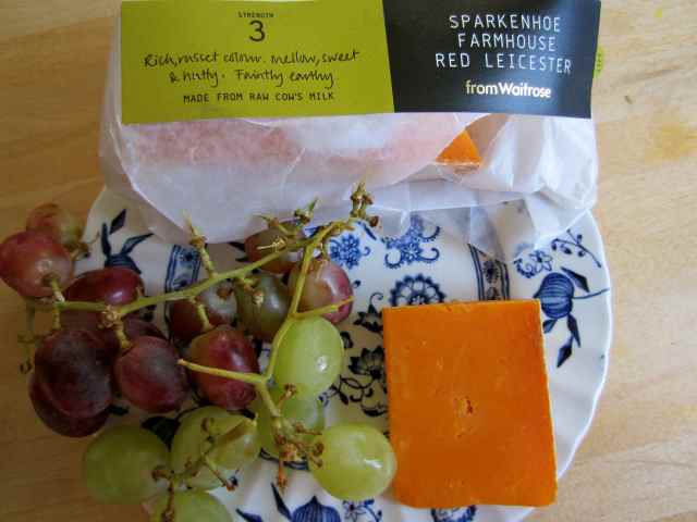 As a snack, while I pondered lunch, cheese and grapes. That cheese is so good, I confess I had some more than this modest piece!