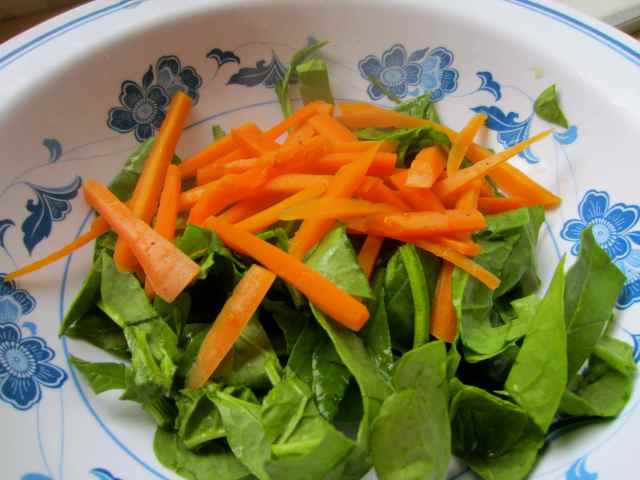 My plan was a bowl of miso soup with noodles, tofu and vegetables but it didn’t work out like that as the miso soup tasted horrible so it became a salad instead, with a mixture of warm and cold things in it. It was surprisingly good.