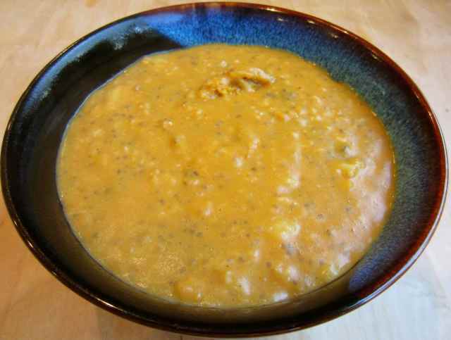 Pumpkin porridge made its debut today.  Well, made its debut this Autumn/Winter.  I added 1/2 a cup of pureed canned pumpkin to my oats, almond milk, chia seeds and pumpkin spice.  Yummy.