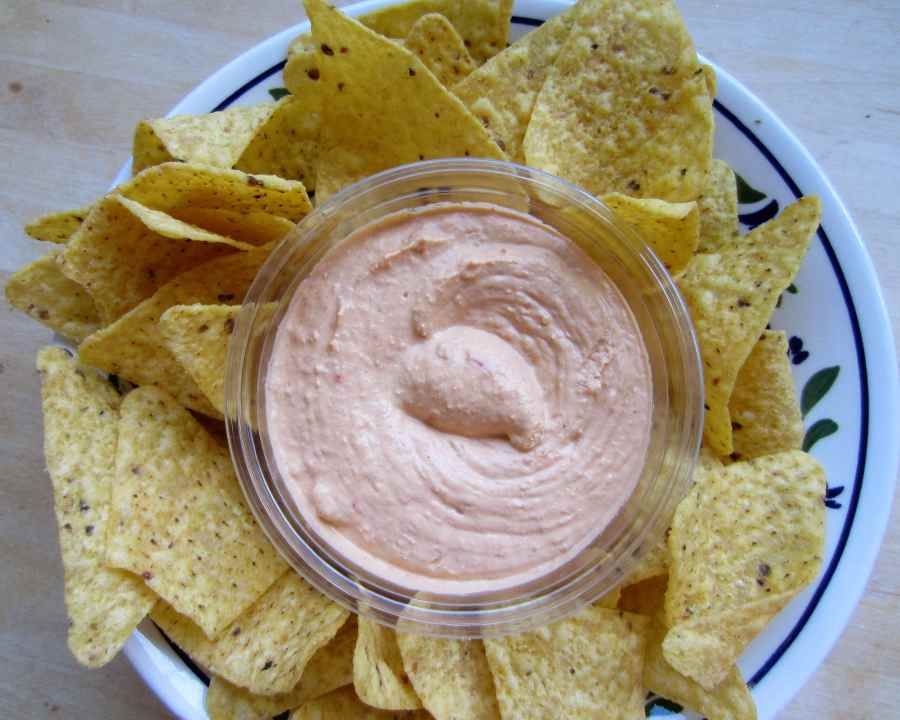 Doritos and red pepper humous