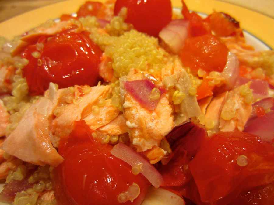 Quinoa, cherry toms and salmon