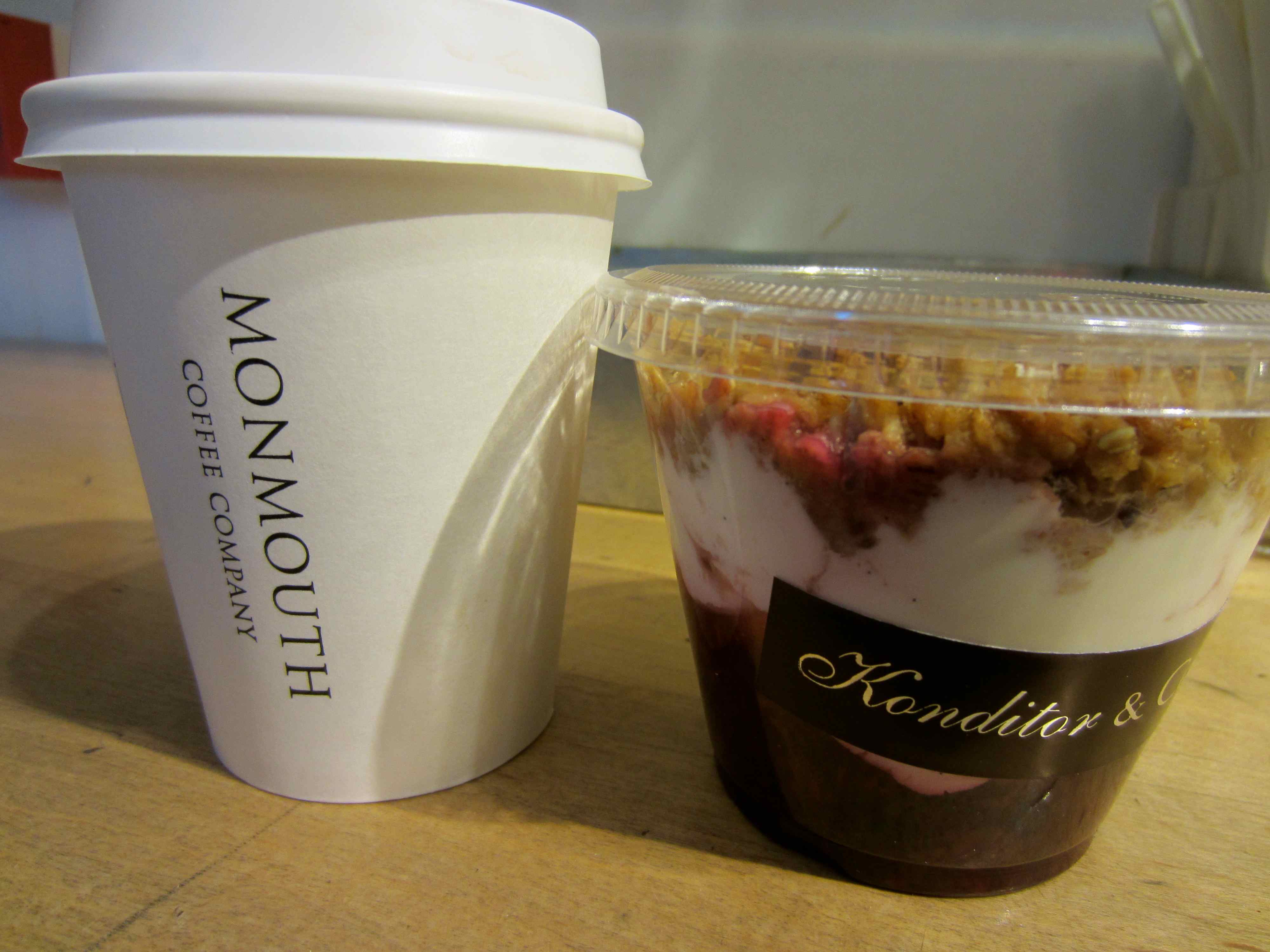 My breakfast was a latte and granola with yogurt, blackerries and apple.  Yummy.coffee and yogurt