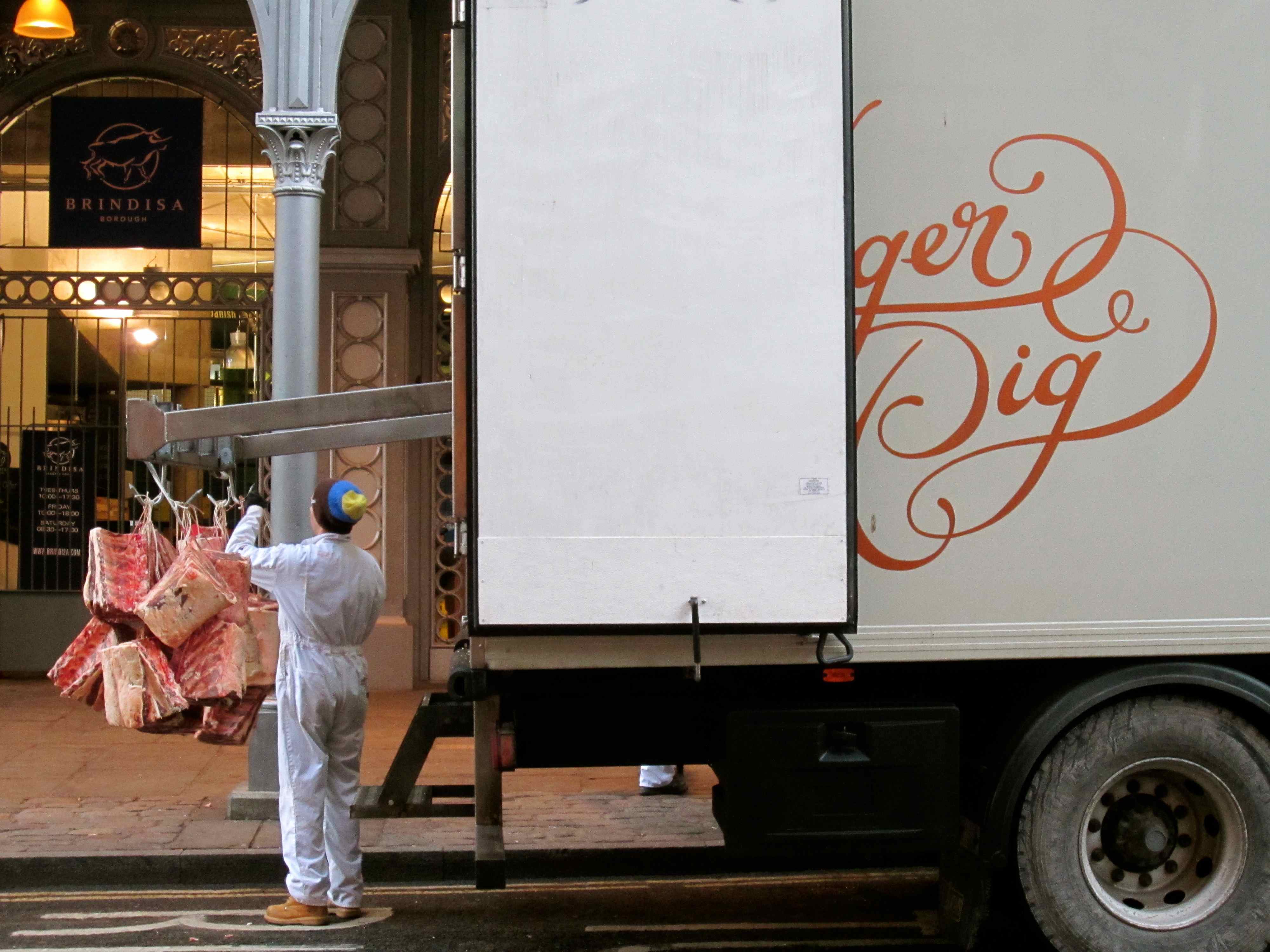 While I was waiting at Monmouth on Tuesday morning for my once a week latte, the Ginger Pig van arrived and 4 porters scurried around unloading it.  Rather them than me.