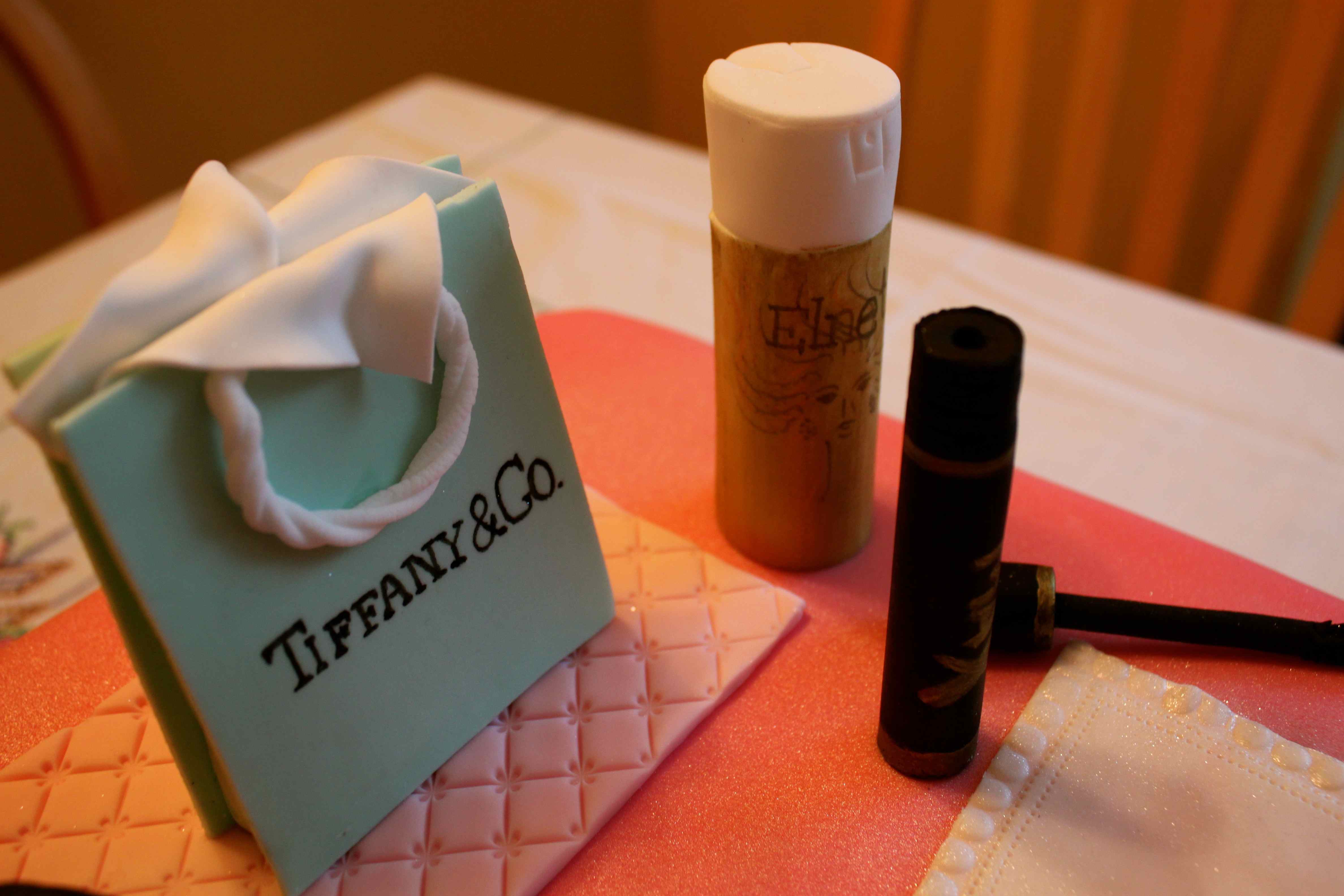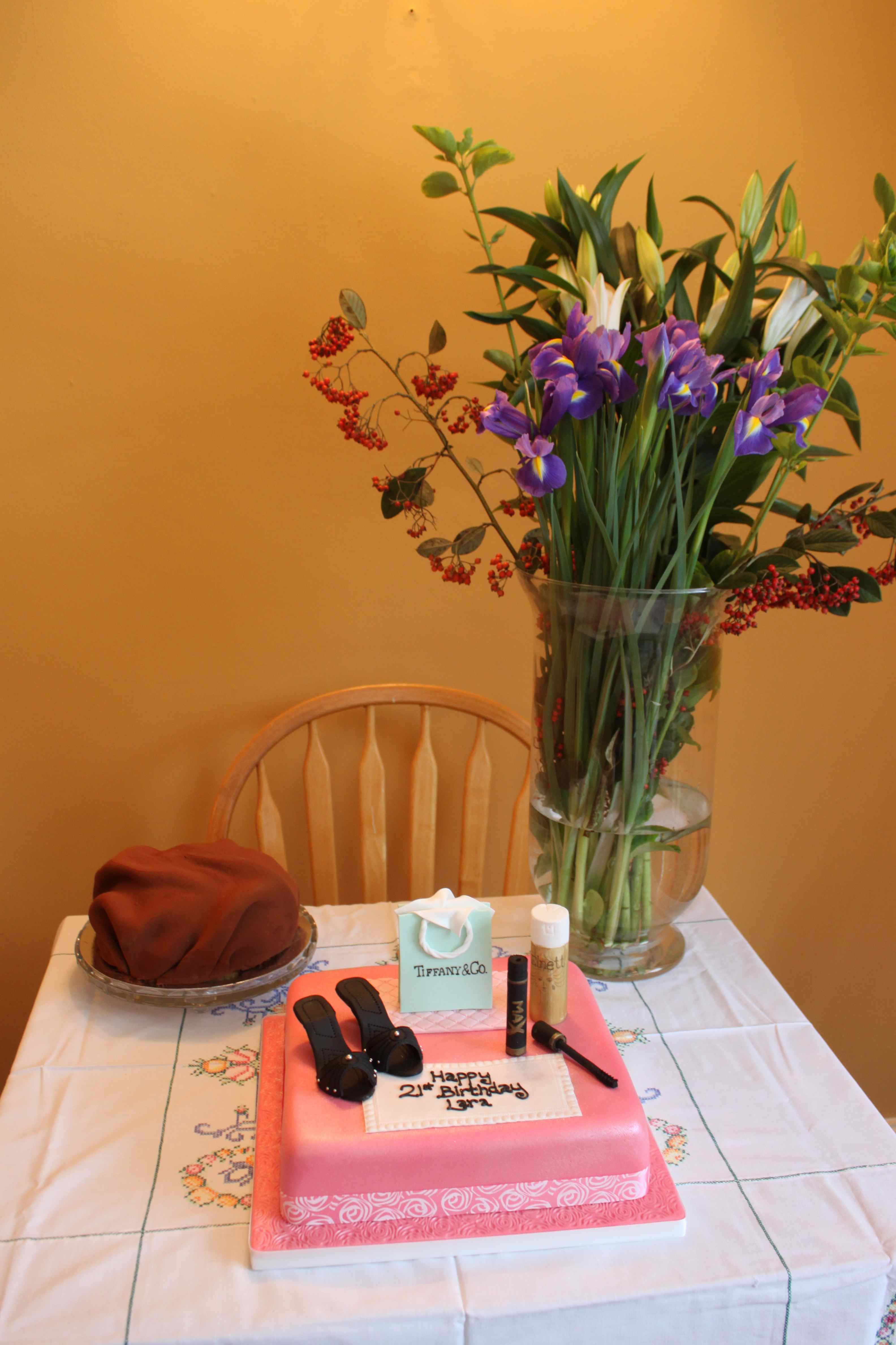First things first, we needed cake. Thank you to Ketta at Flossie Pops Cakery for making and then delivering this beautiful cake. If you live locally and need a cake for a special ocassion, click on the link above and have a look at Flossie Pops’ site. Ketta will make whatever you want. I wanted a chocolate fudge cake as that is Lara’s favourite, covered in pink to celebrate her girliness and with some models of a few of her favourite things: Tiffany, high heels, Elnett and mascara. We were all delighted with the result. Thank you Ketta.