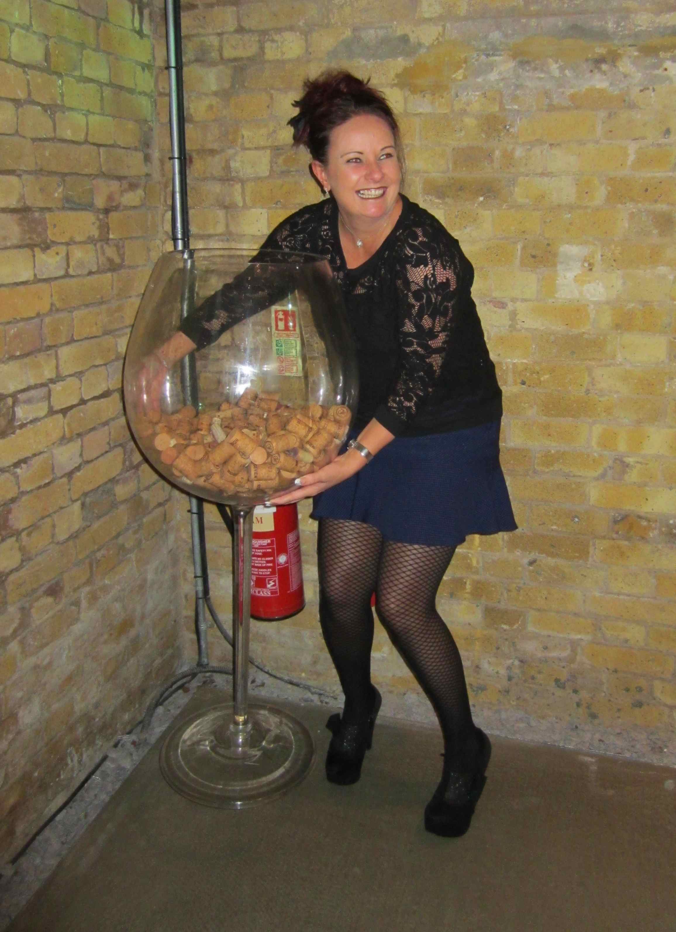 It costs £29 which buys you 12 tokens and a tapas plate. You start off with a talk and video about wine tasting which some took more seriously than others :-). This is the lovely Cherry-Ann who was visiting from the Glasgow office and always livens the place up.