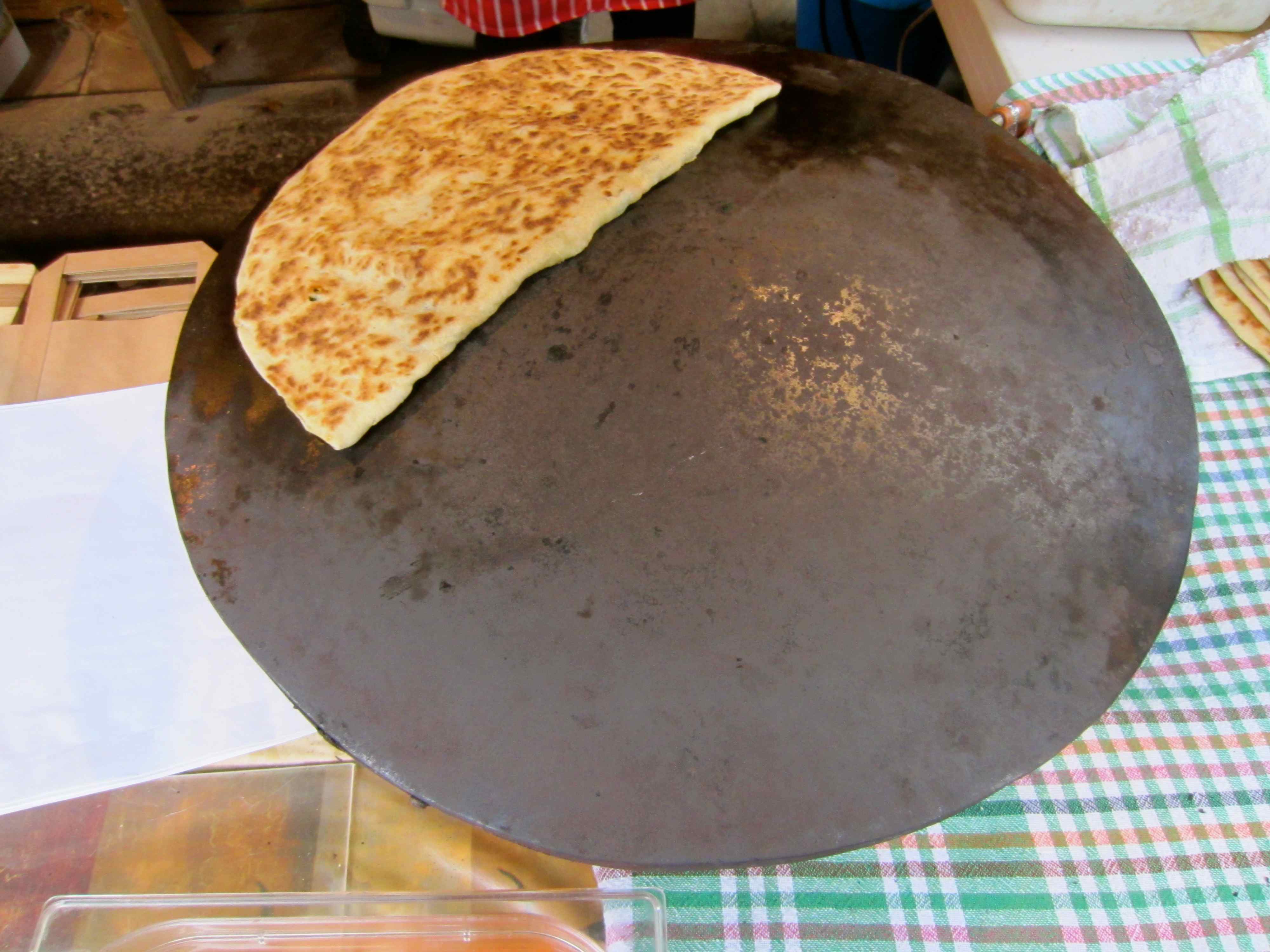 The one I chose was folded in half and stuffed with spinach which was then warmed on a hot plate.
