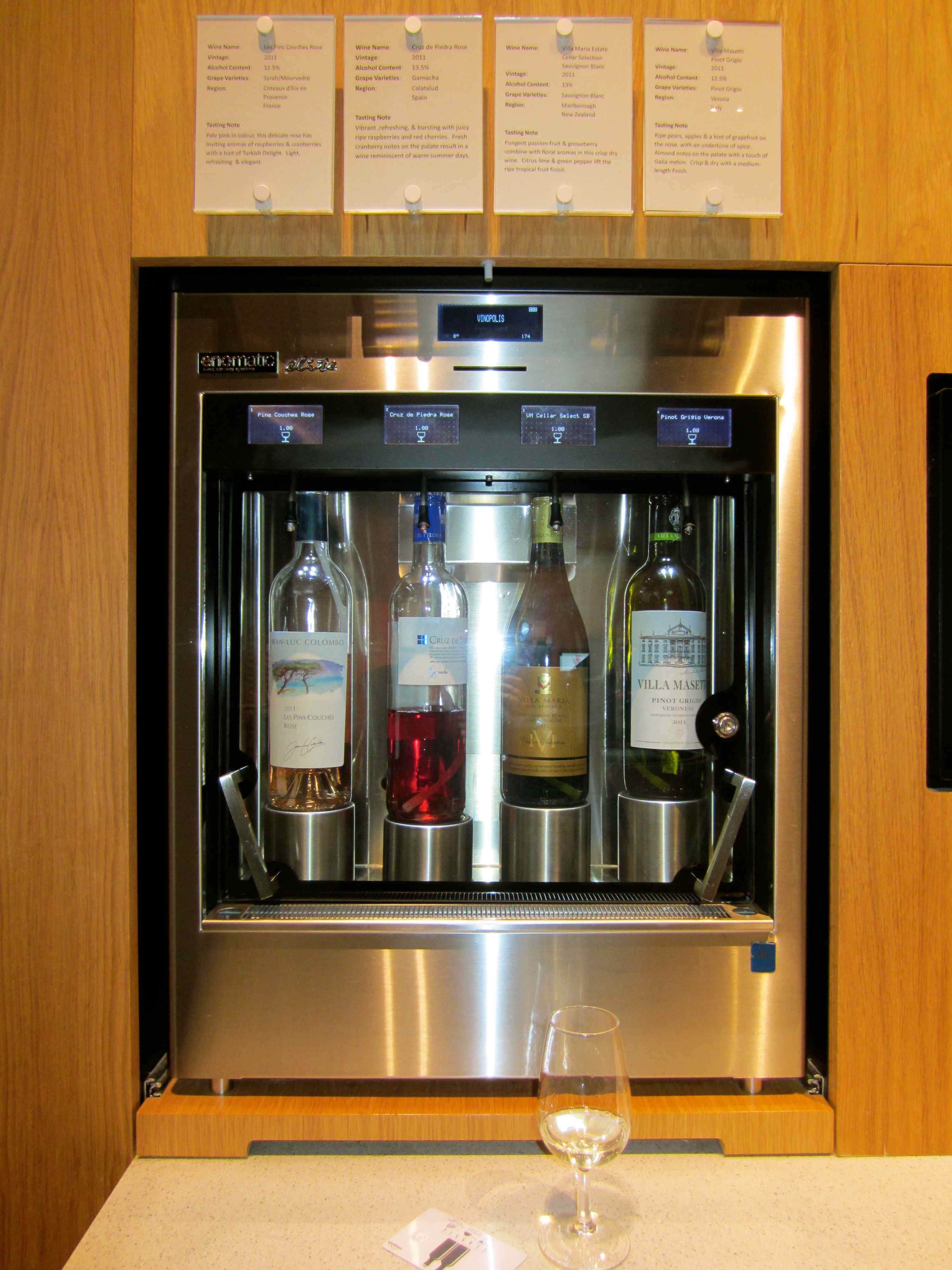 Wine is grouped in to types and maintained at optimum temperature. The wines have different prices/token values, mainly between 1 and 4. So you can choose how to “spend” your 12 tokens. I wanted to drive home from the station so I decided to be extravagant and mainly tasted expensive wines so I drank less. By drinking vintage champagne, my glasses of fizz cost me 4 points so I only had 3 glasses. Each glass was only 25 ml so no worries about being over the limit.