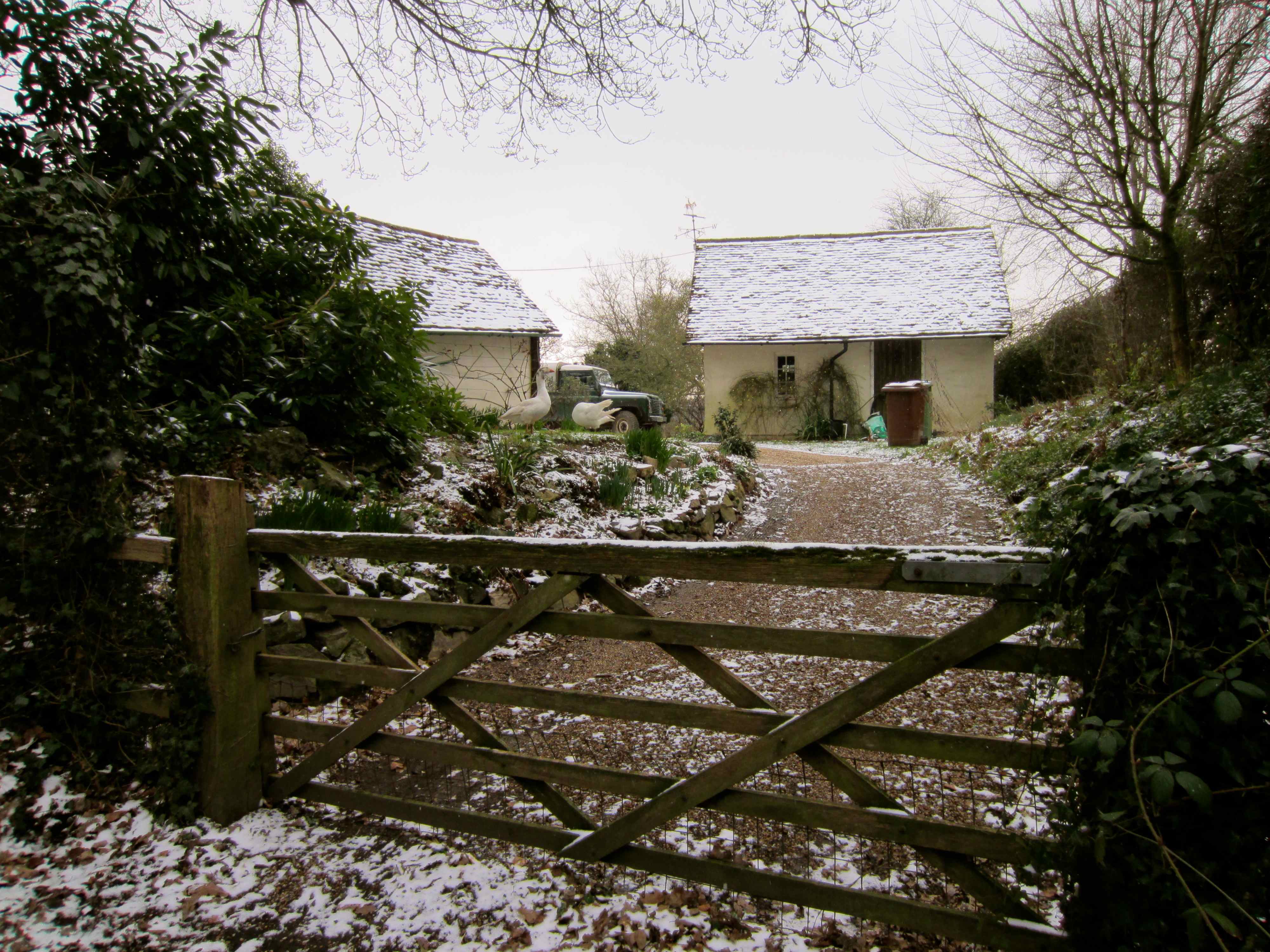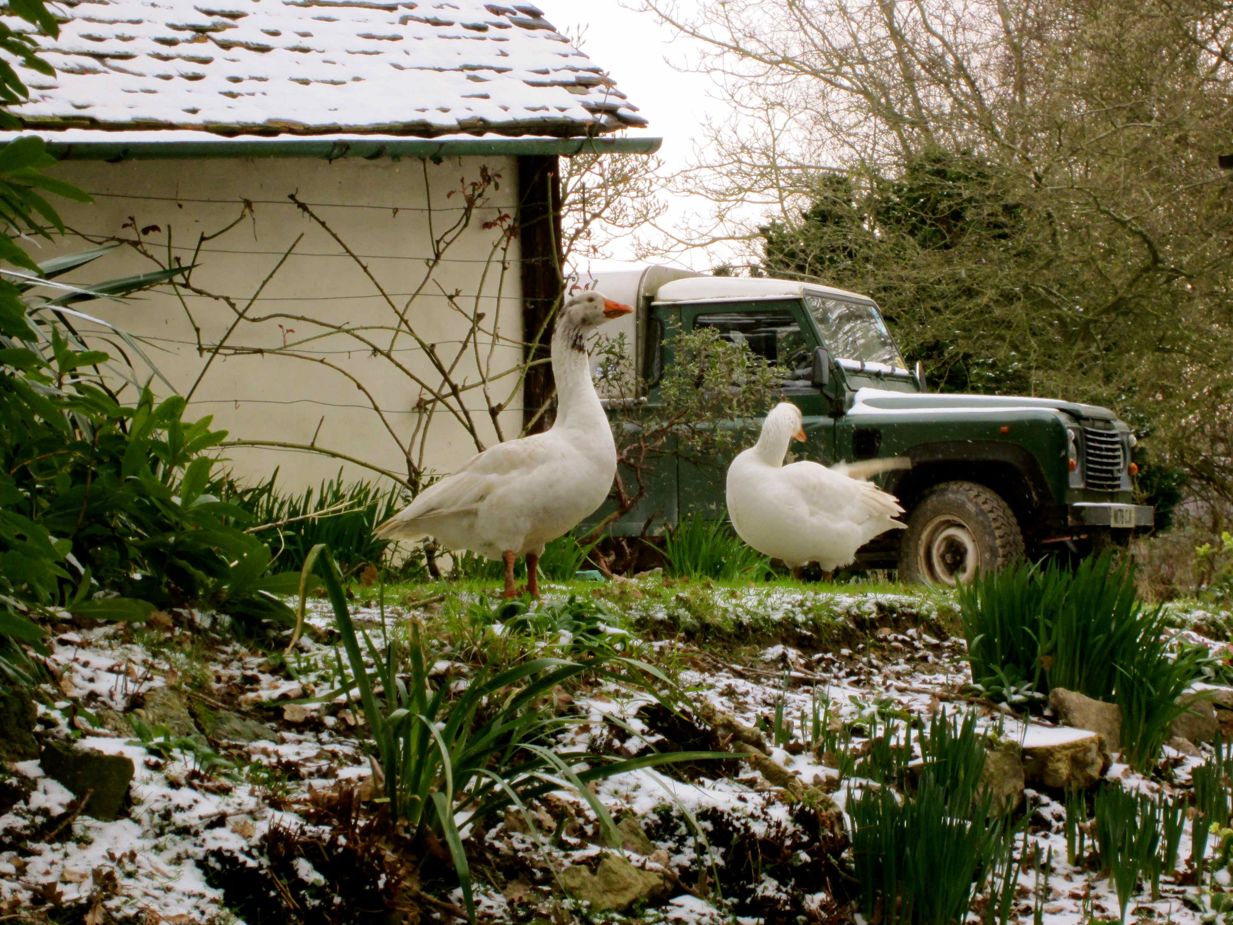 I had to take my car to the garage to have a new tyre fitted and I was surprised to see some large birds in a neighbours garden.
