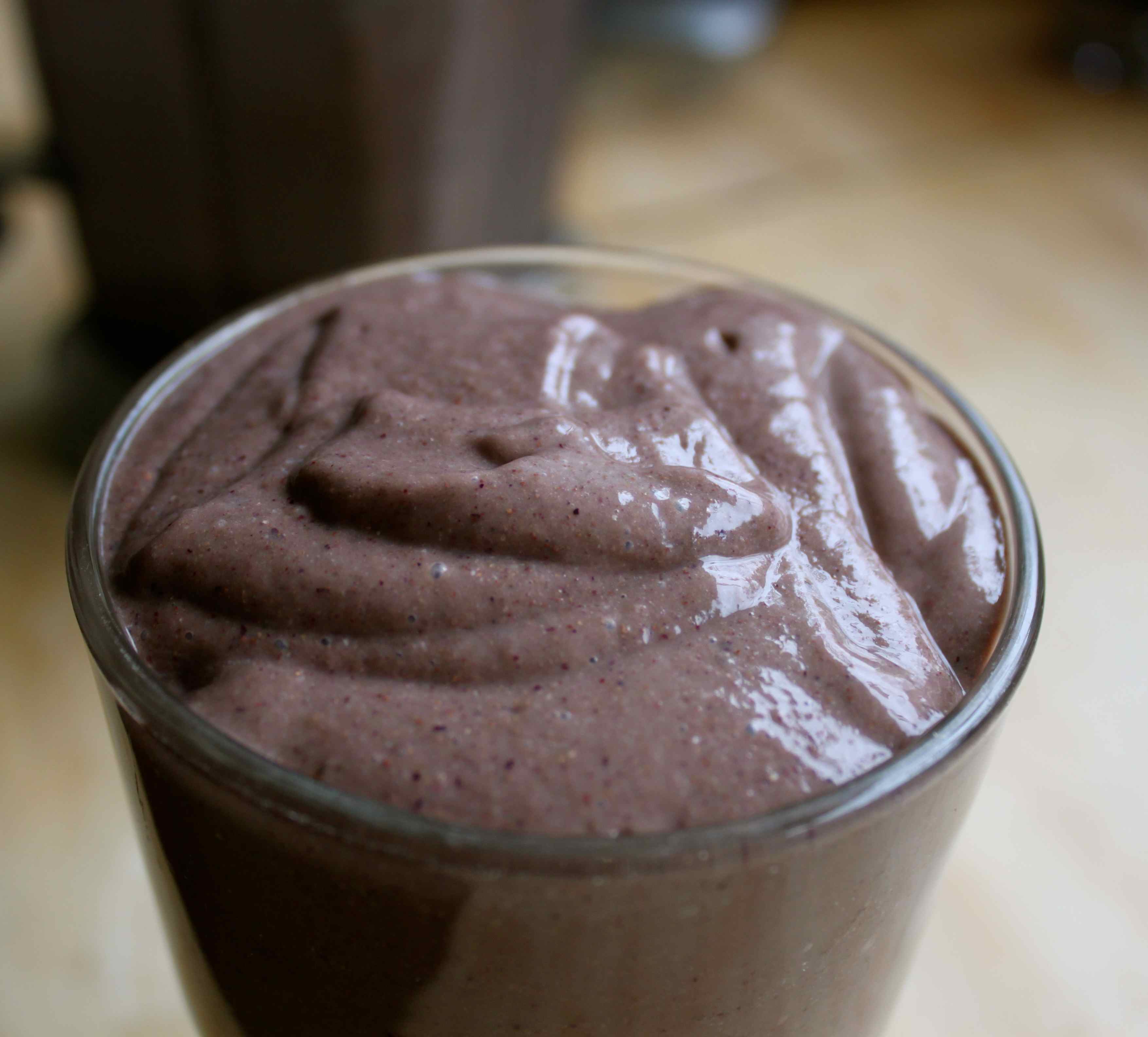 Plus half an avocado, Chia seeds, cacao nibs and Acaii powder.avocavo and bits in blender