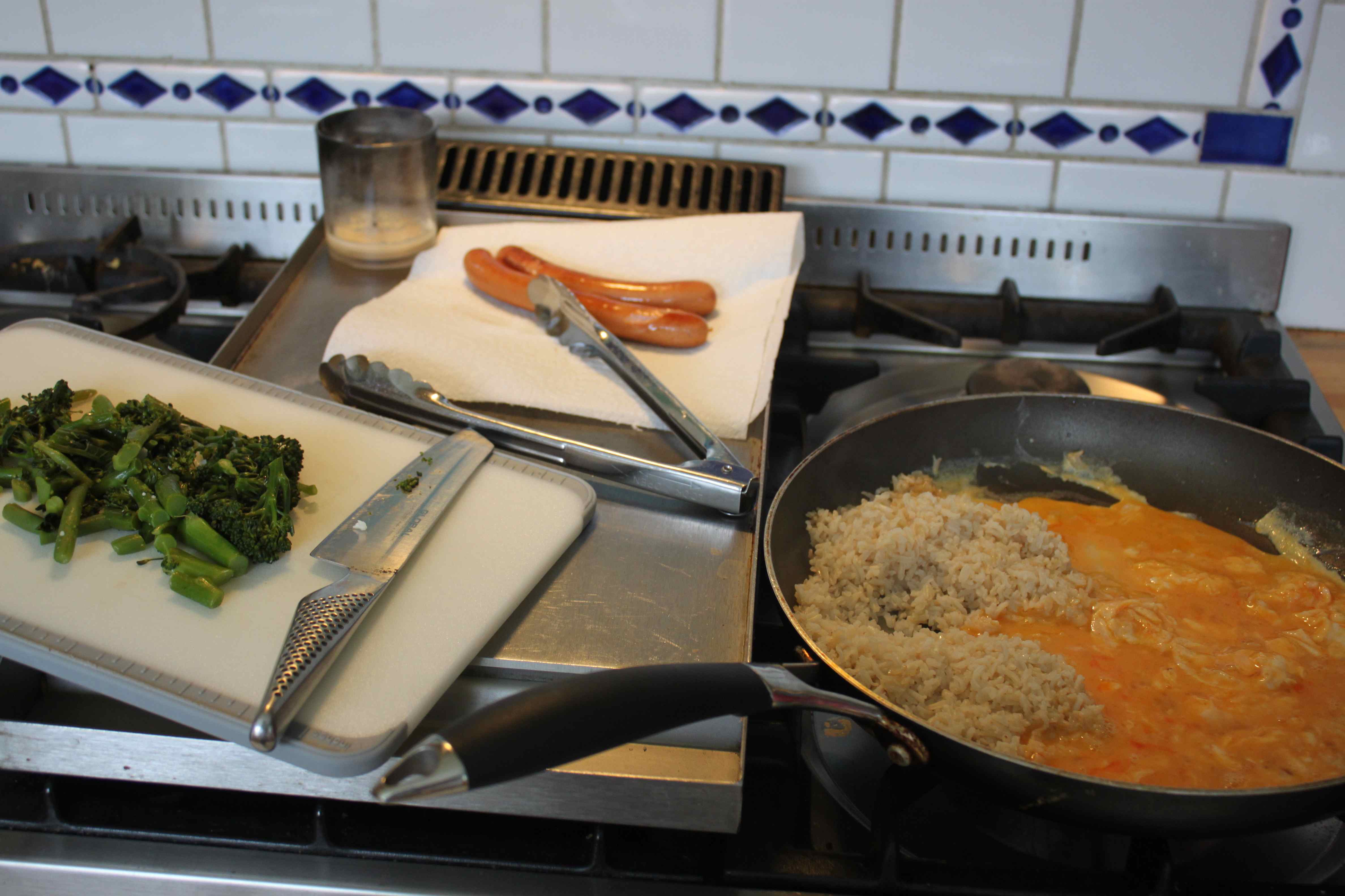 I cooked it with eggs and broccoli. The frankfurters are Harvey’s – not my thing.