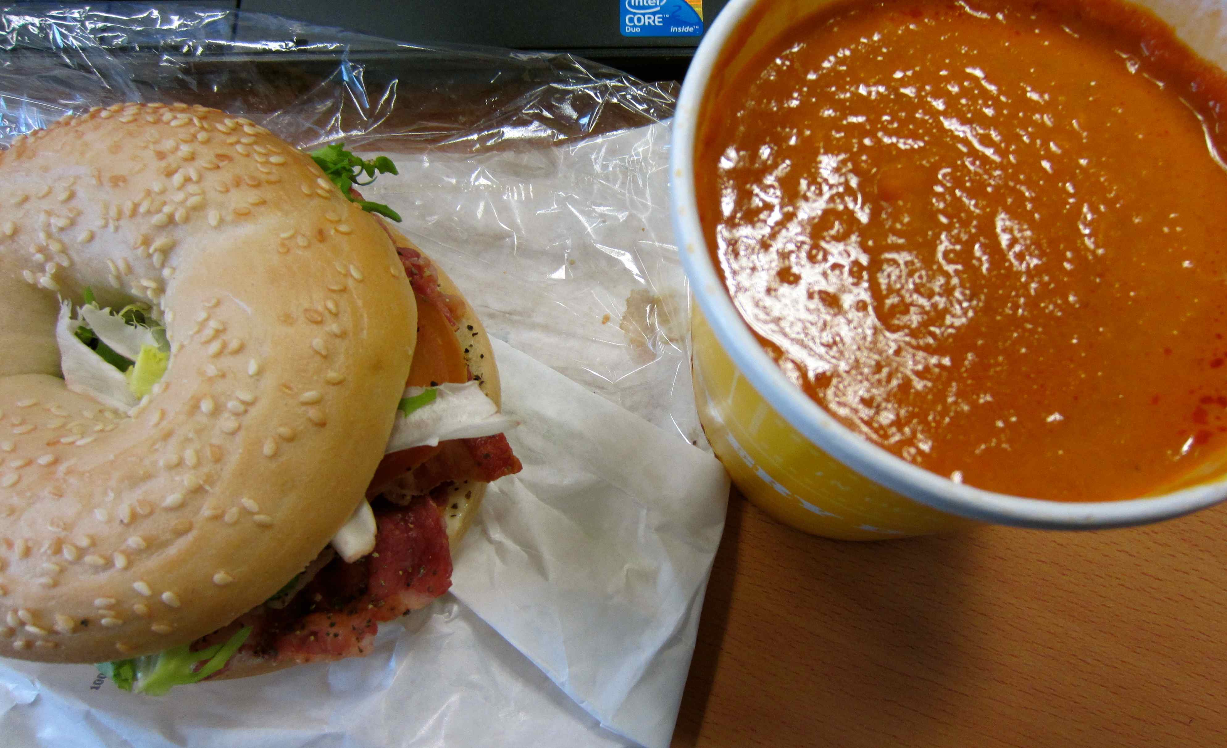 I was so cold I really enjoyed the BLT bagel and tomato soup I ate at my desk.