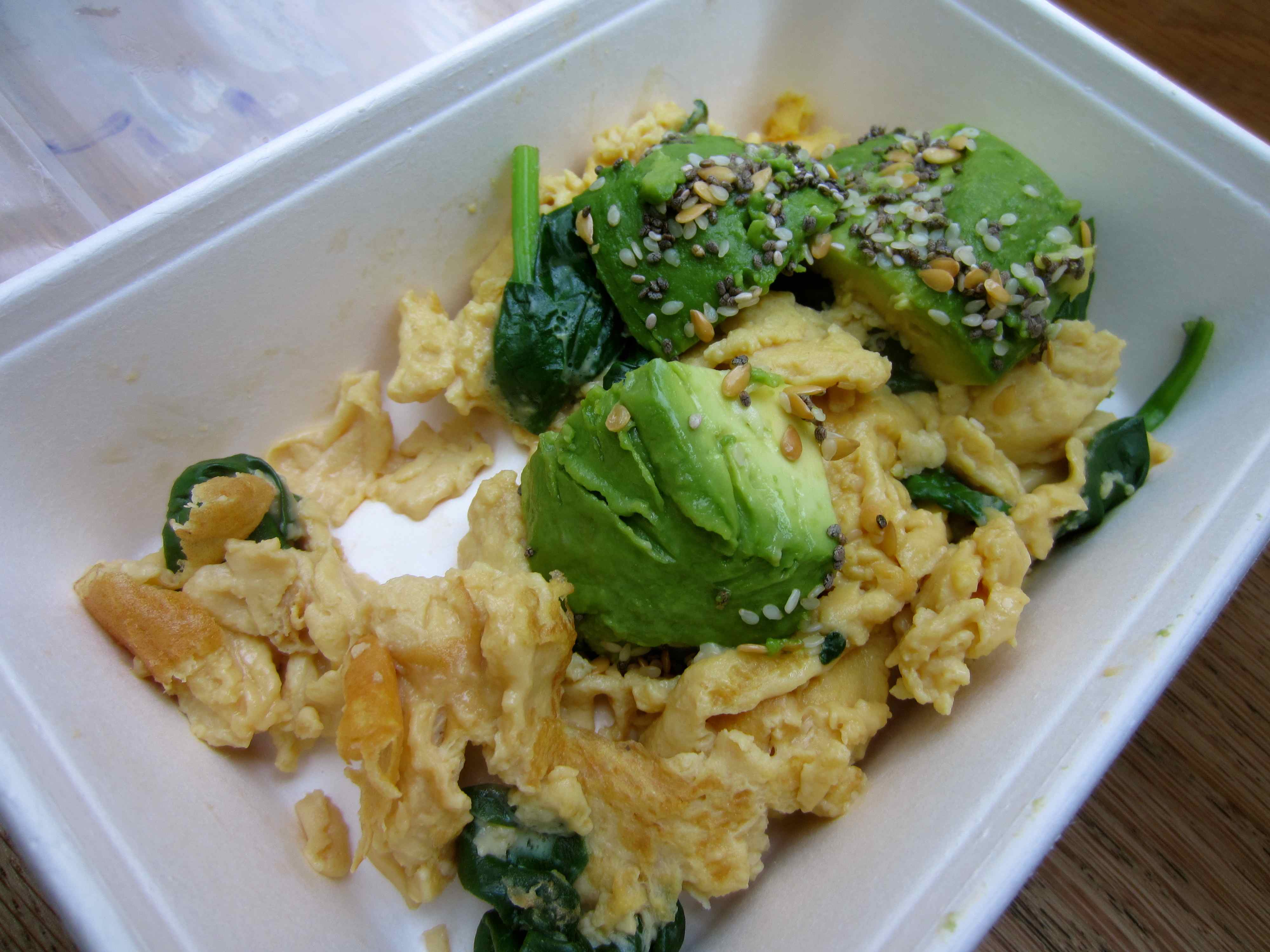 I started today well with a pod breakfast of eggs with spinach and avocado.