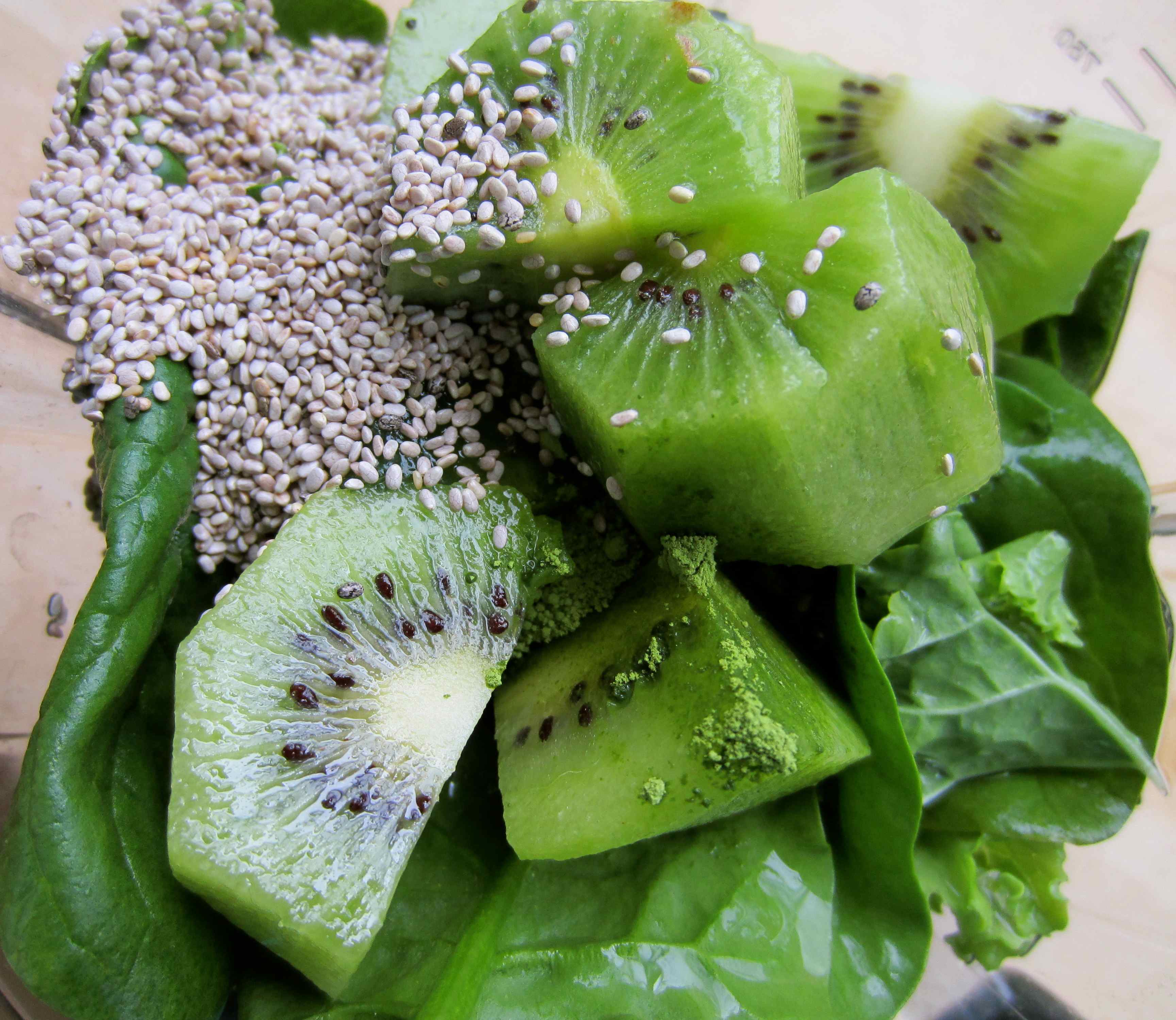 I just had spinach, kale, 2 kiwi fruits, matcha, white chia seeds and coconut water.