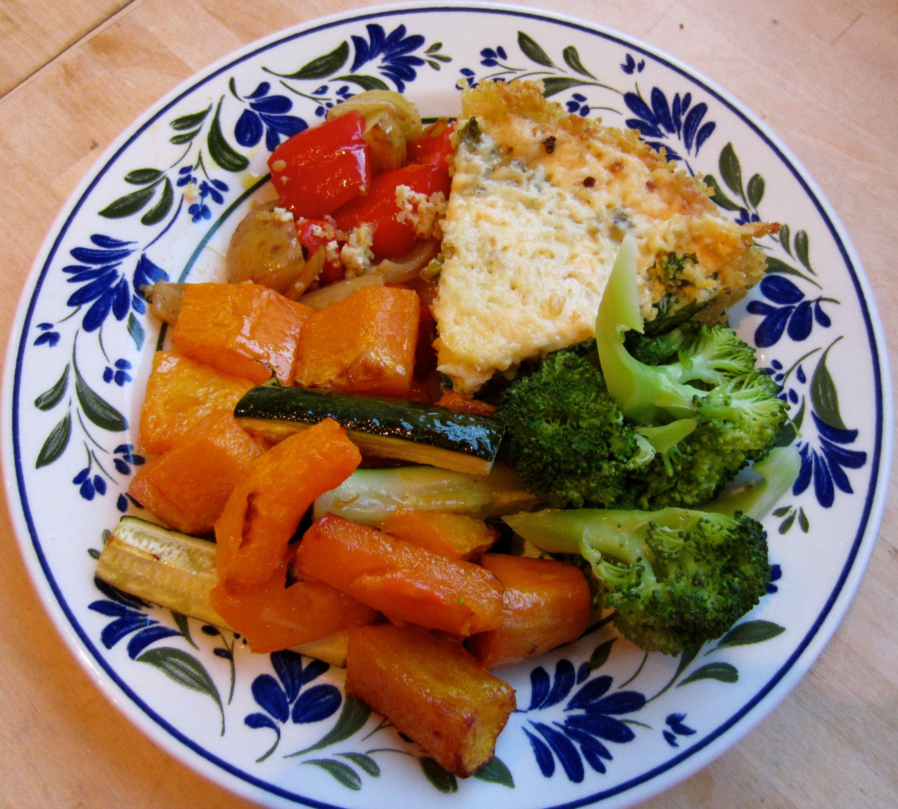 Supper was very easy. We had left over frittata which was easy to reheat. I roasted a fresh tray of veggies plus some left over from last night and steamed a pile of broccoli. The roasted vegetables included butternut squash, one sweet potato, courgette, red peppers, onion and potatoes.