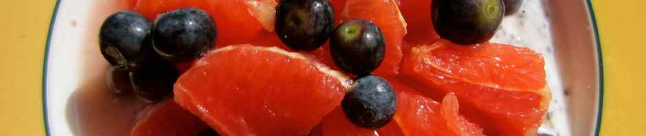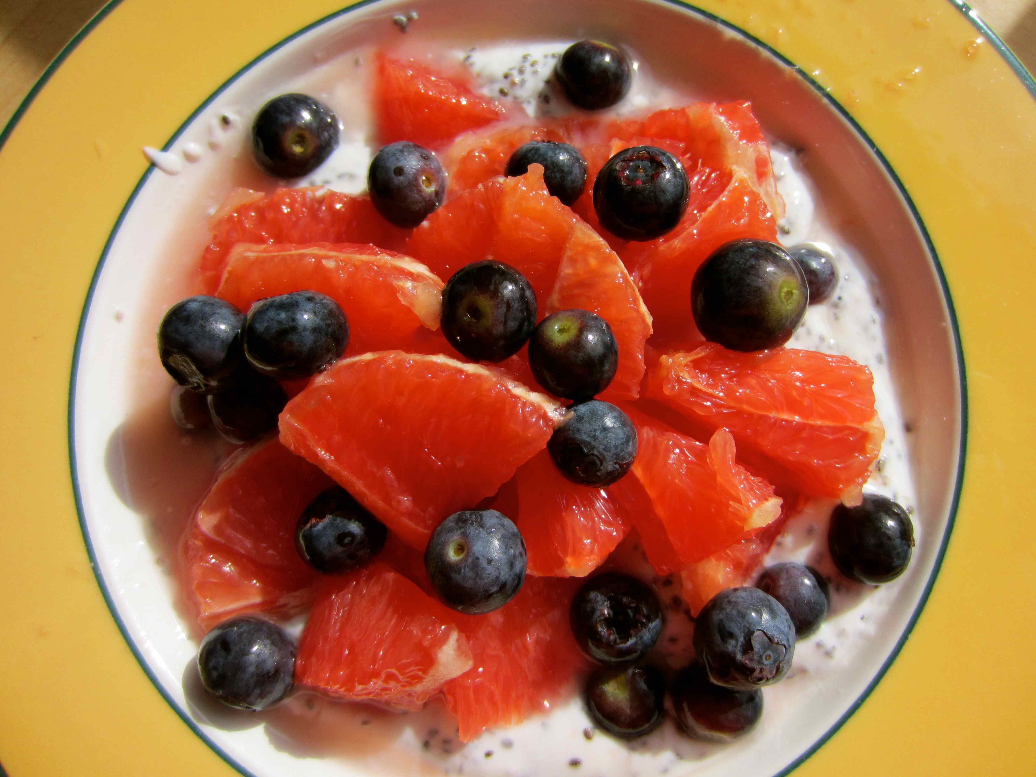 For breakfast I had 100g natural yogurt with 1 tbsp chia seeds, 1 pink grapefruit and a handful of blueberries.