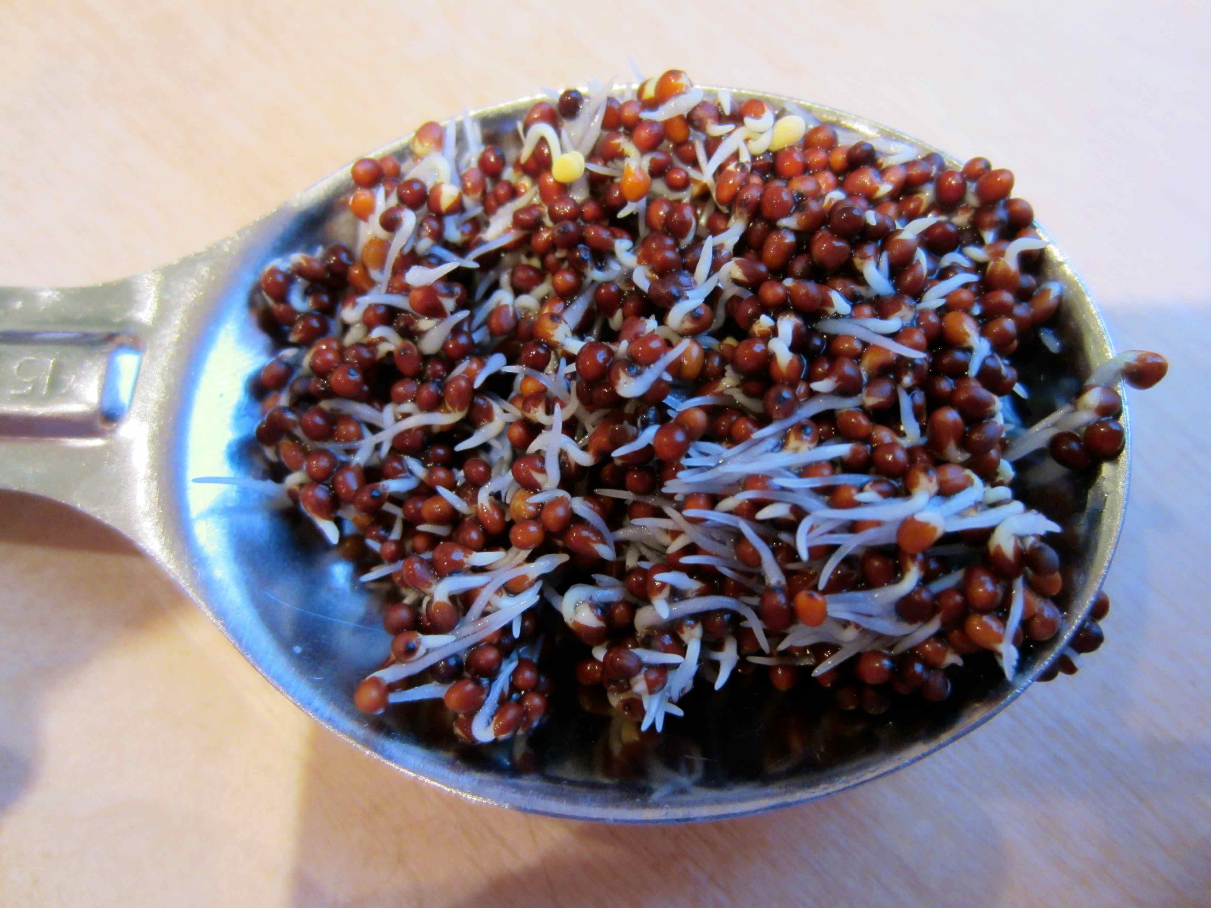 I have been germinating these broccoli seeds since Sunday and they were ready today so I put 1 tbsp in the blender.