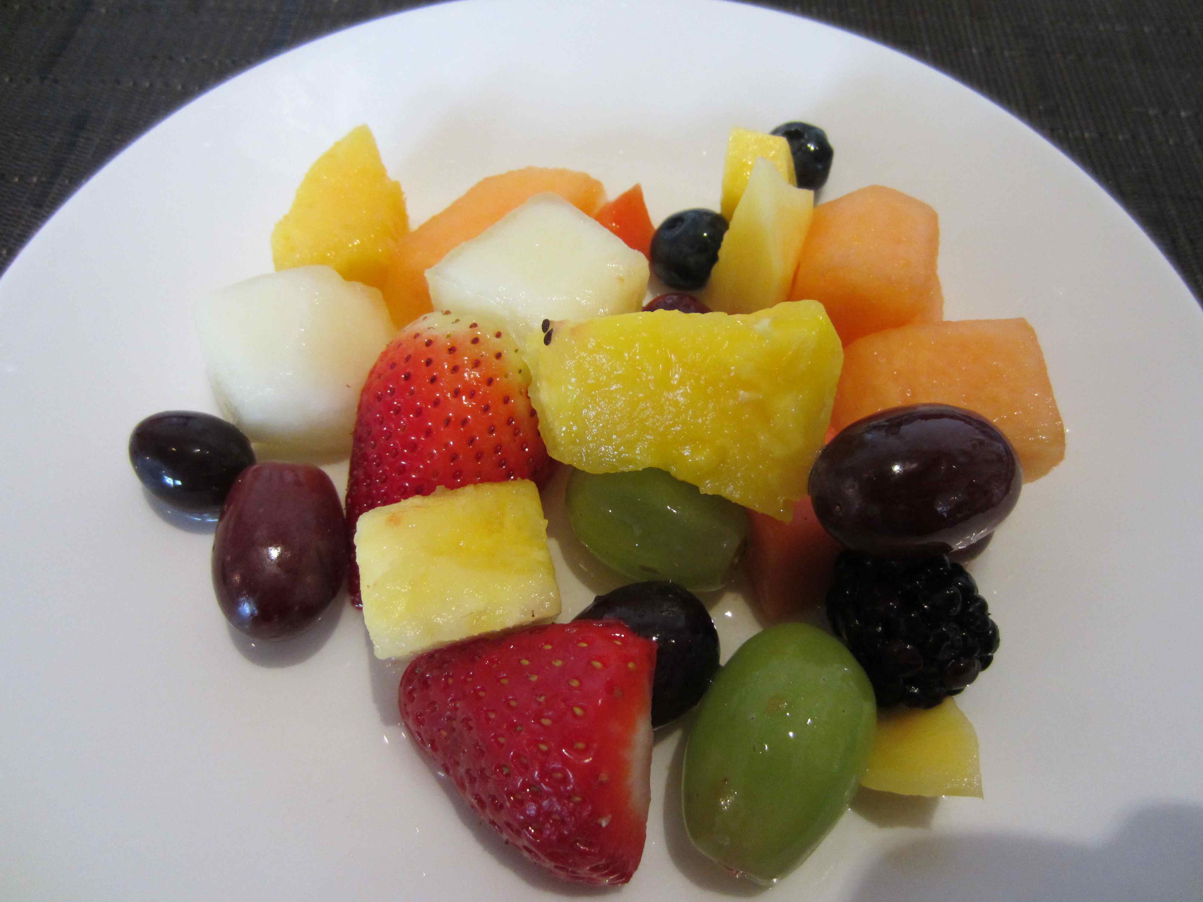 I managed to resist the Creme Brûlée, chocolate tart and profiteroles and instead had a small serving of fruit salad. I was impressed by how good I was.