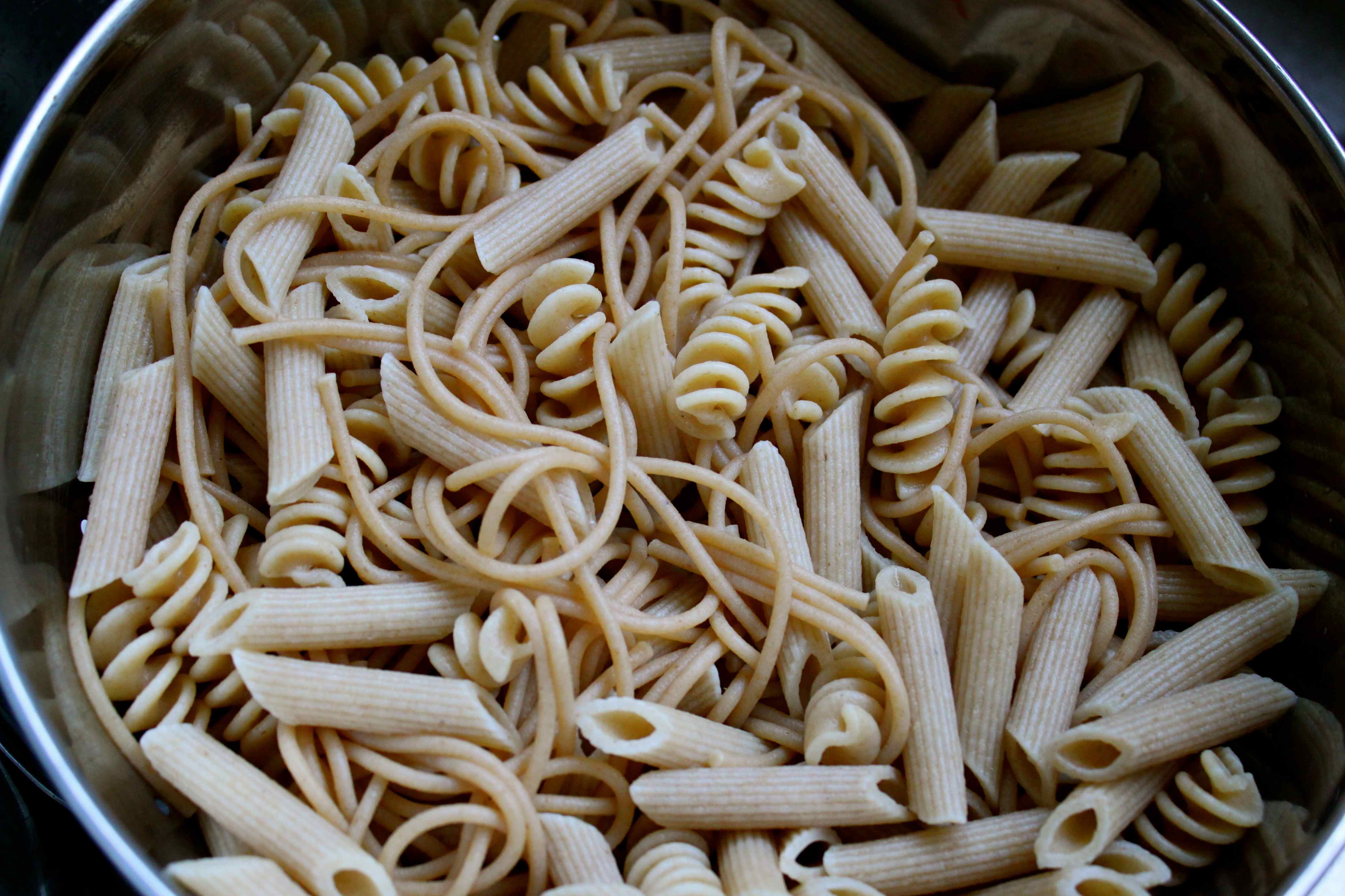 Cook the macaroni which I didn’t have so I used 3 types of wholemeal pasta as I only seemed to have dregs left in the packets.