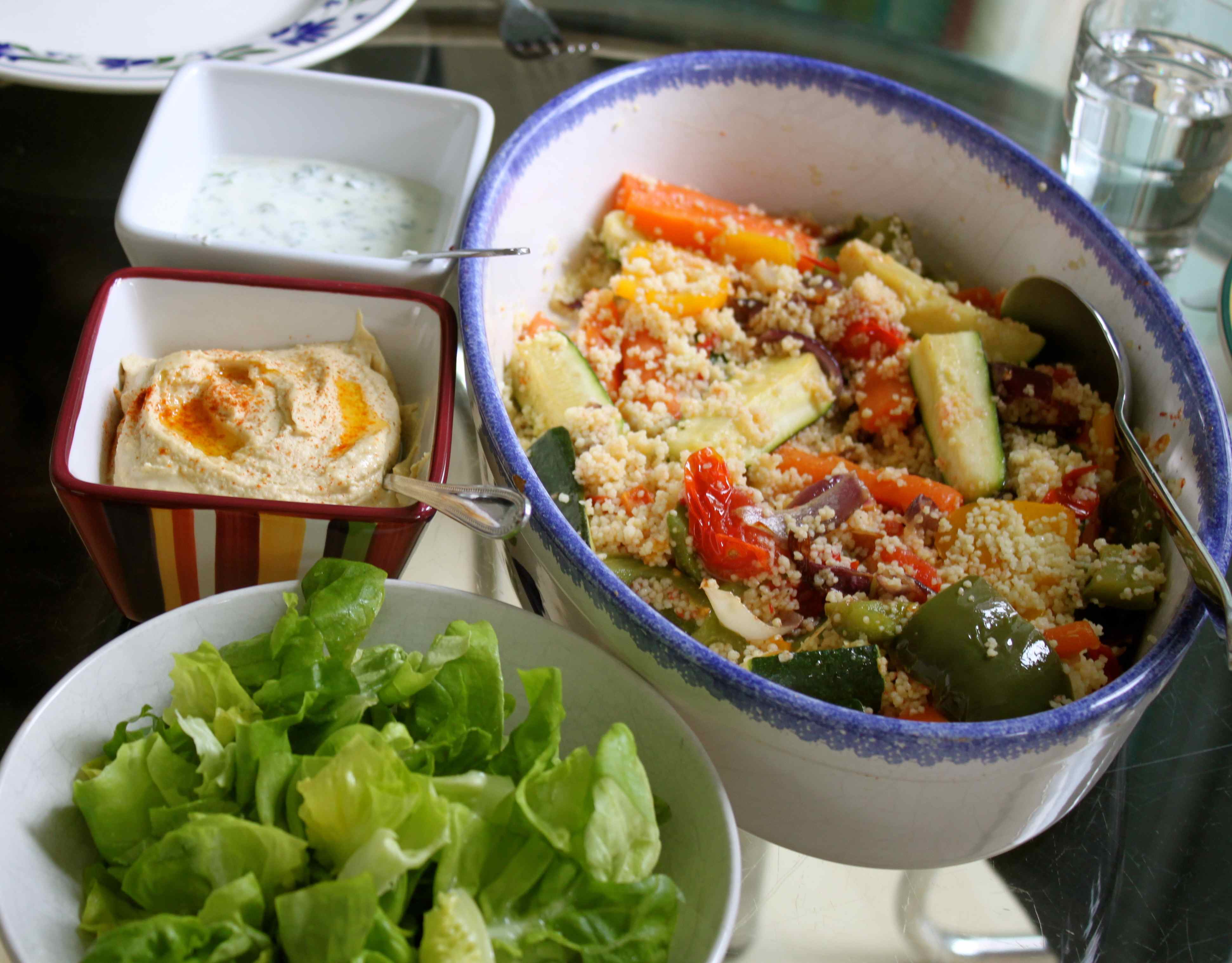 The hummus looks delicious! I also love the vegetables with the couscous.