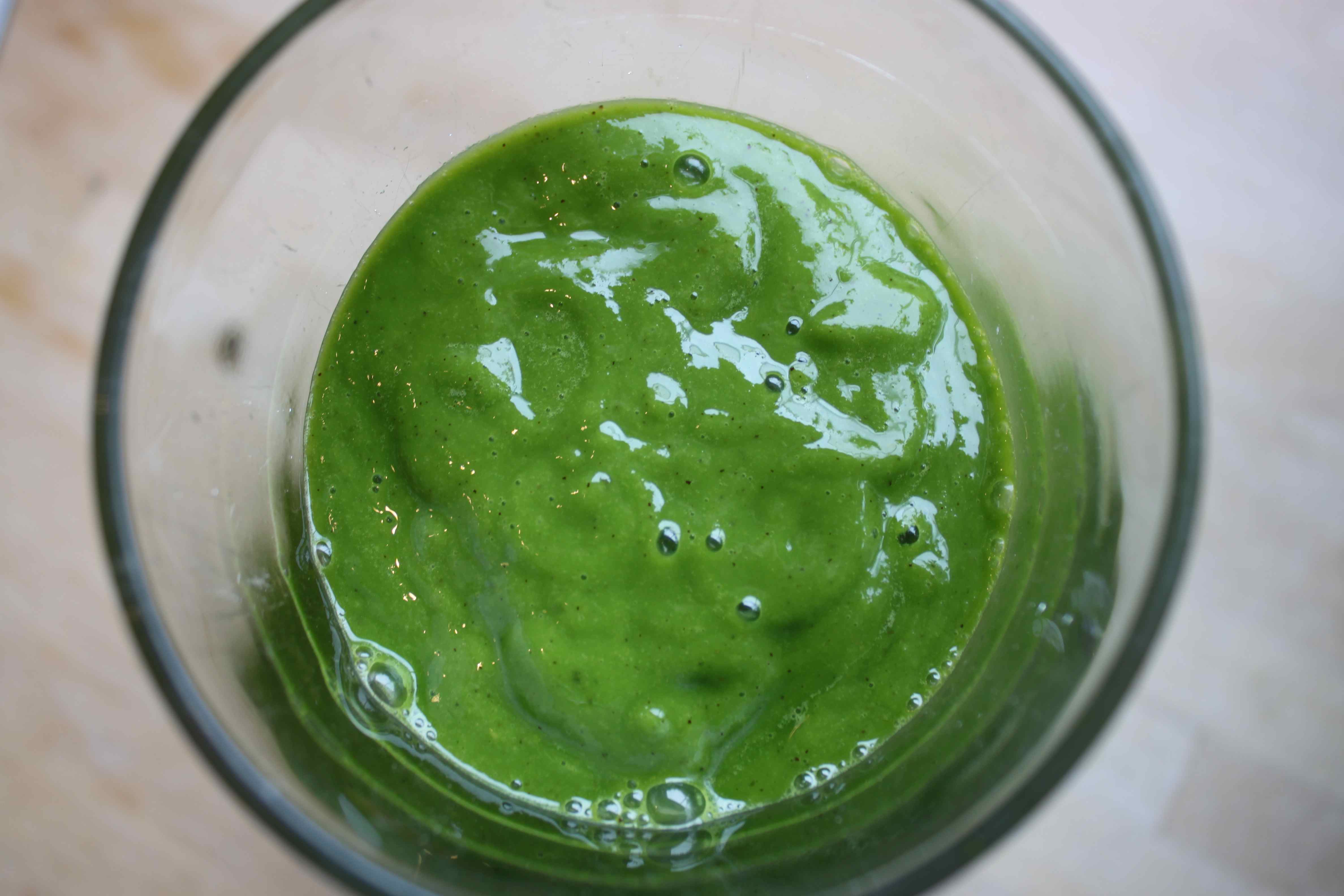 For lunch I had a green smoothie made with celery, kale, a kiwi, kelp and a mango.