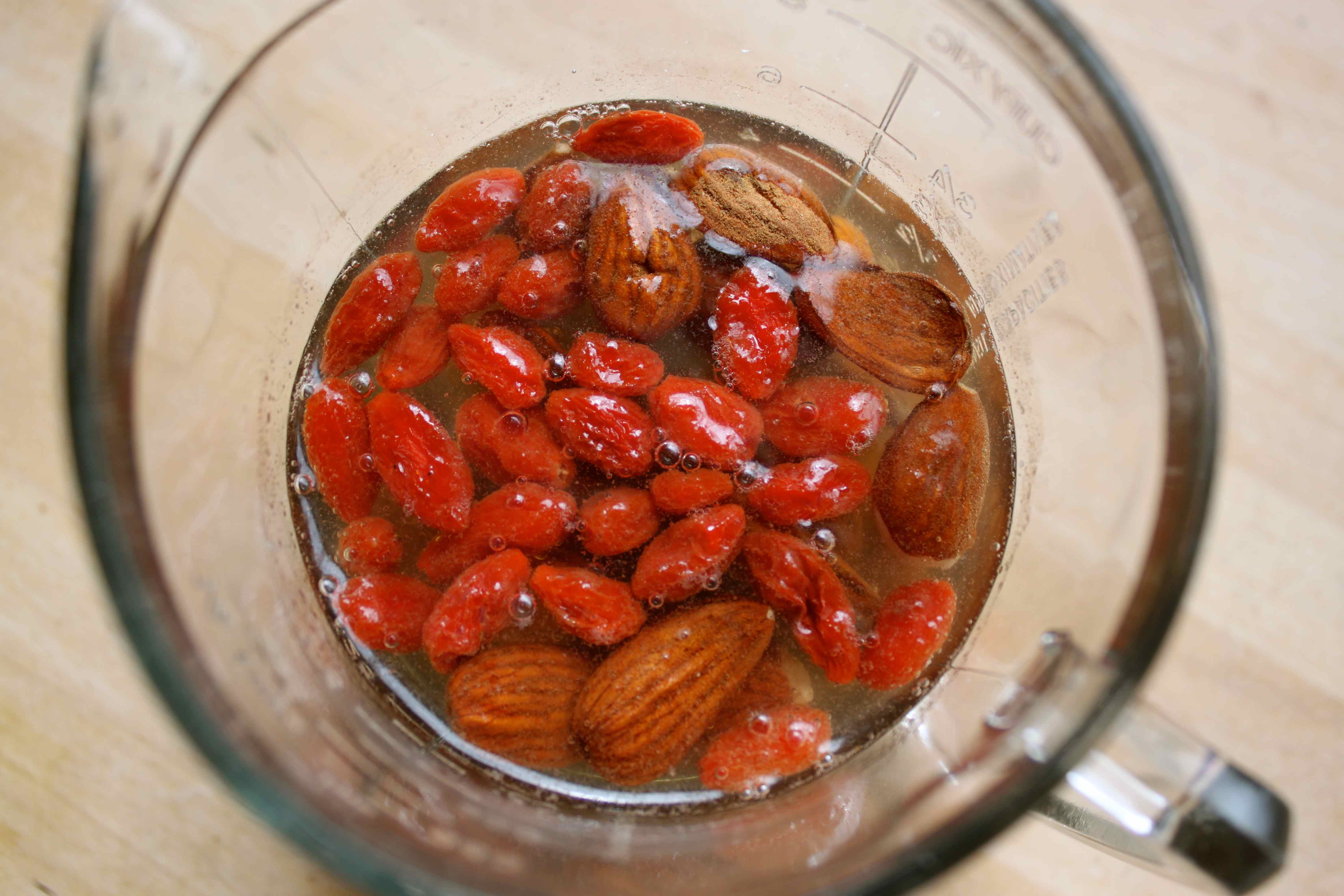 Today I woke up feeling worse then ever. I put 1 heaped tbsp each of raisins, goji berries and almonds in to some water to soak for when I felt ready to eat them. I drank some green tea and that seemed to help settle my stomach.