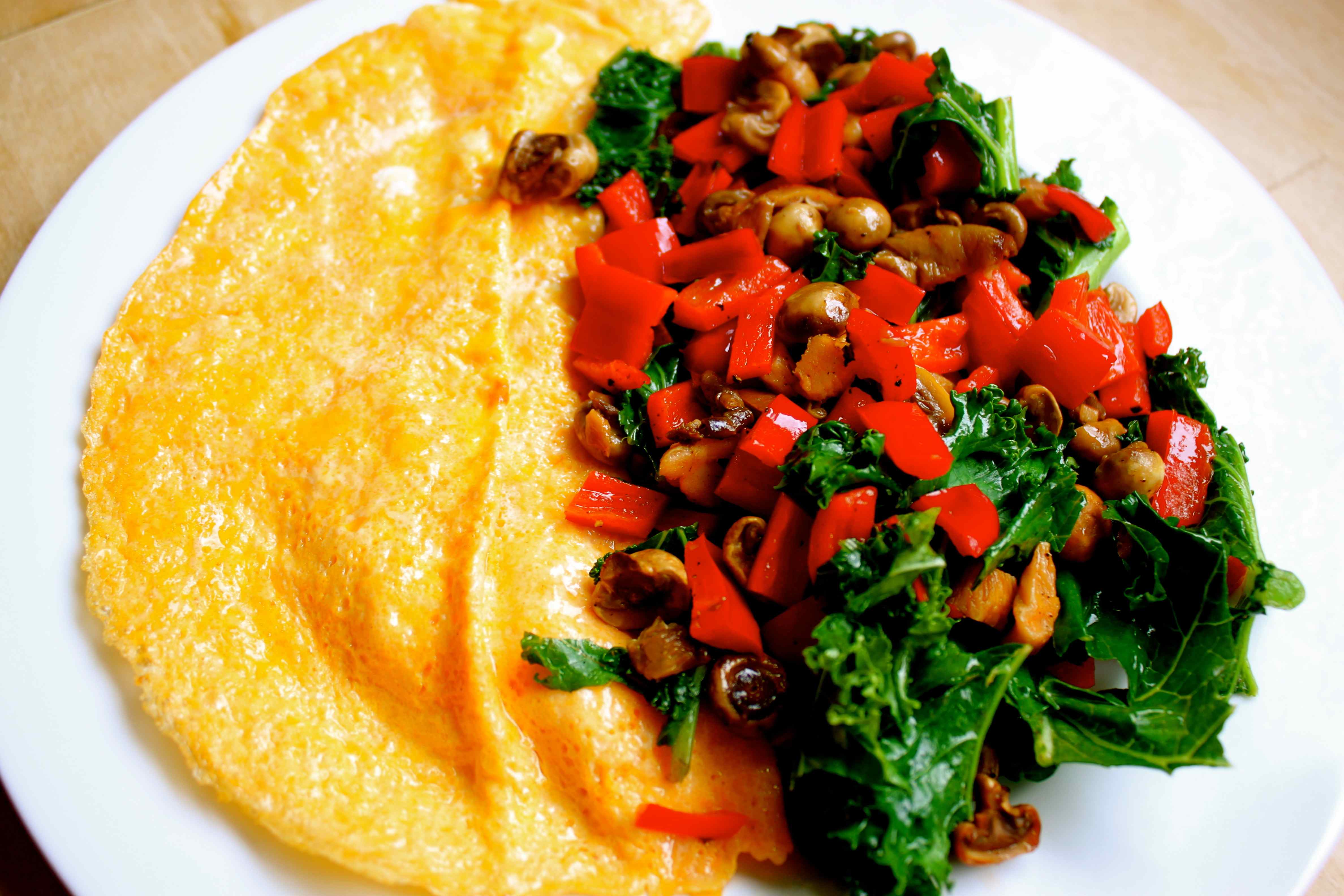 I began to feel more human and so cooked a light lunch. I didn’t fancy anything raw so I gently cooked some mushrooms, red peppers and kale in a little butter.