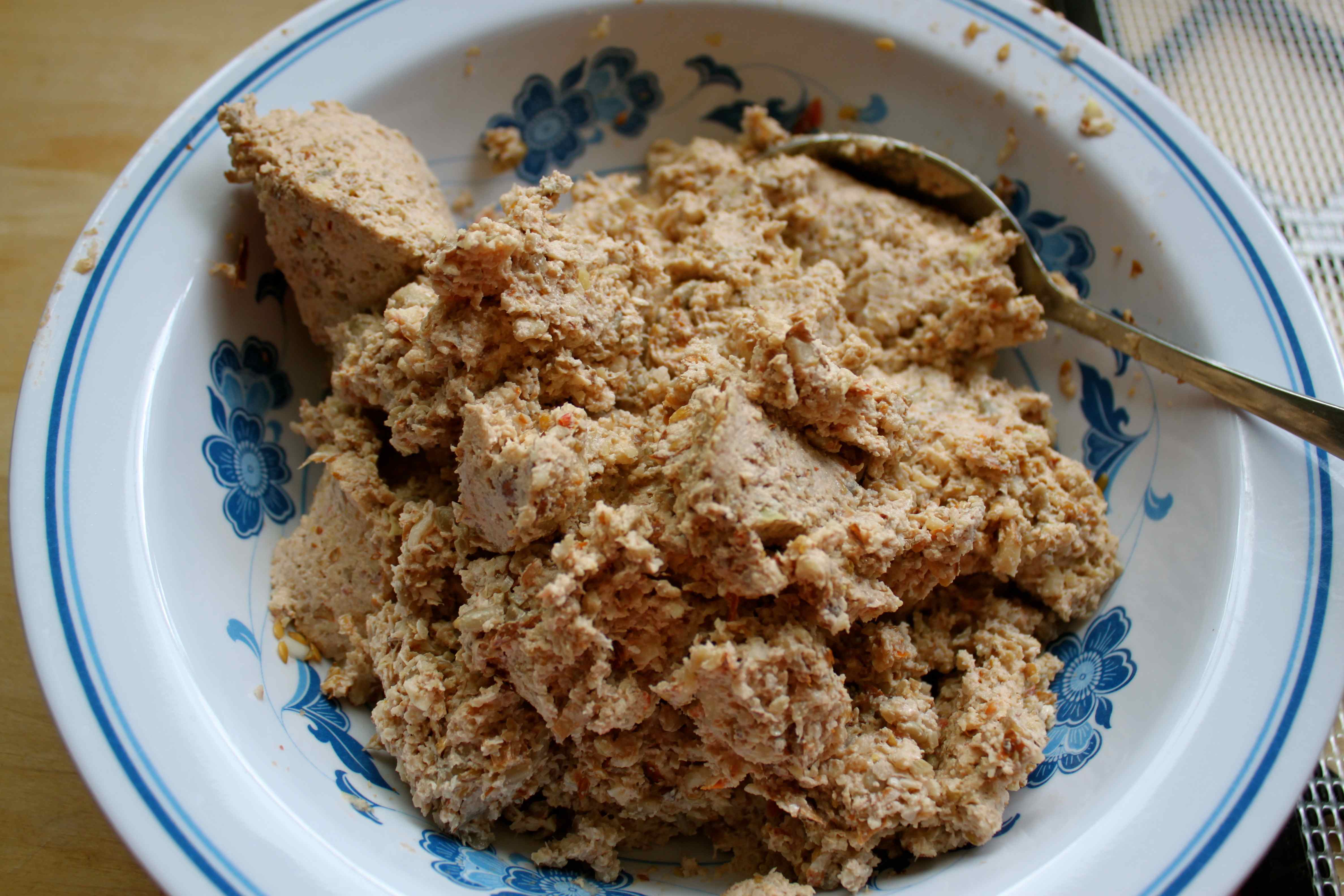 Mixing the nuts with the onion and tomato was a real challenge and both the VitaMix and my blender struggled. After a lot of perseverance it was virtually done but some lumps remained. I decided that rather then risk breaking one of my machines I would enjoy the texture.