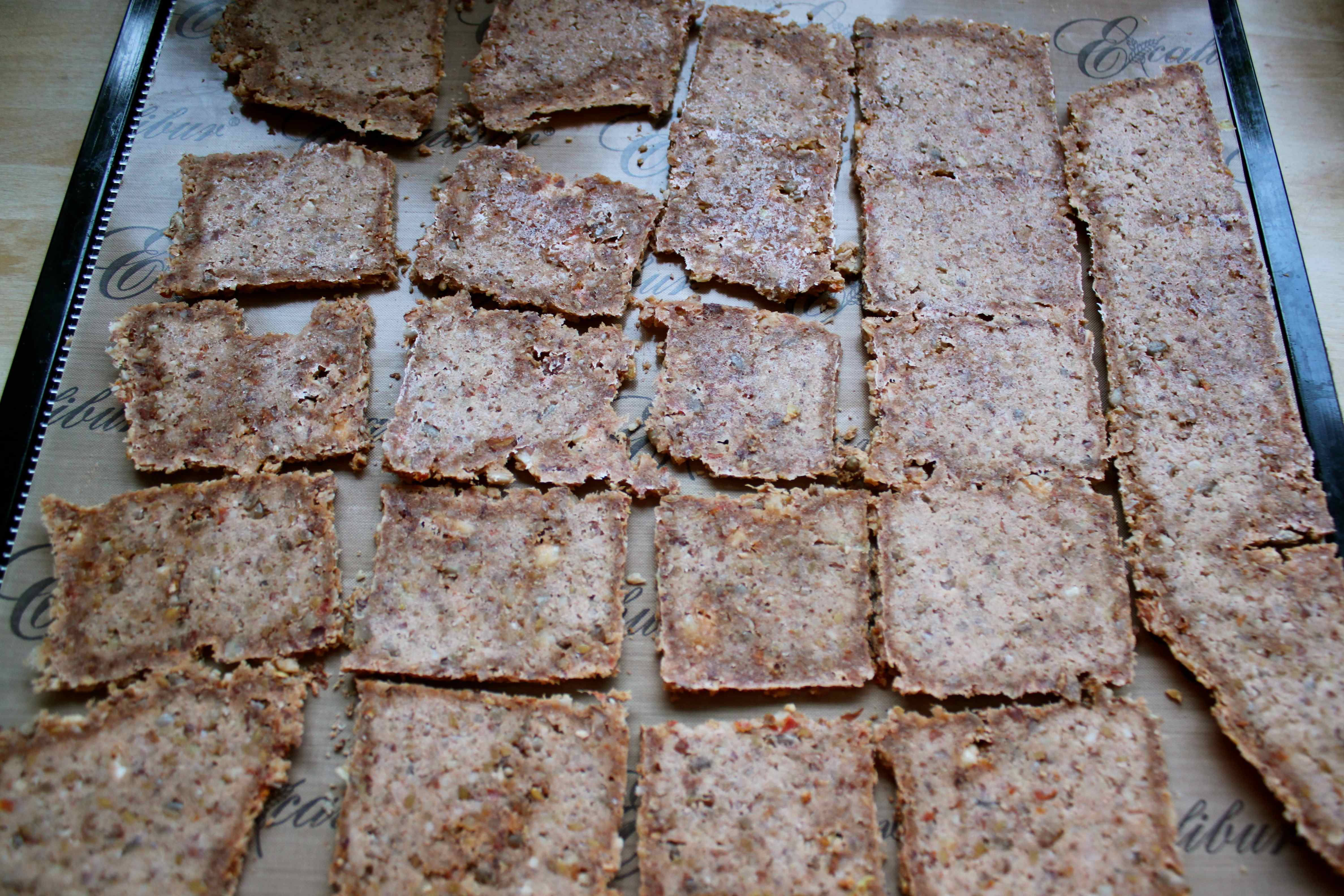 Next on the dehydrator menu were some nut and flax crackers. I used this recipe from The Rawtarian. I had to soak the walnuts, almonds and sunflower seeds for an hour.