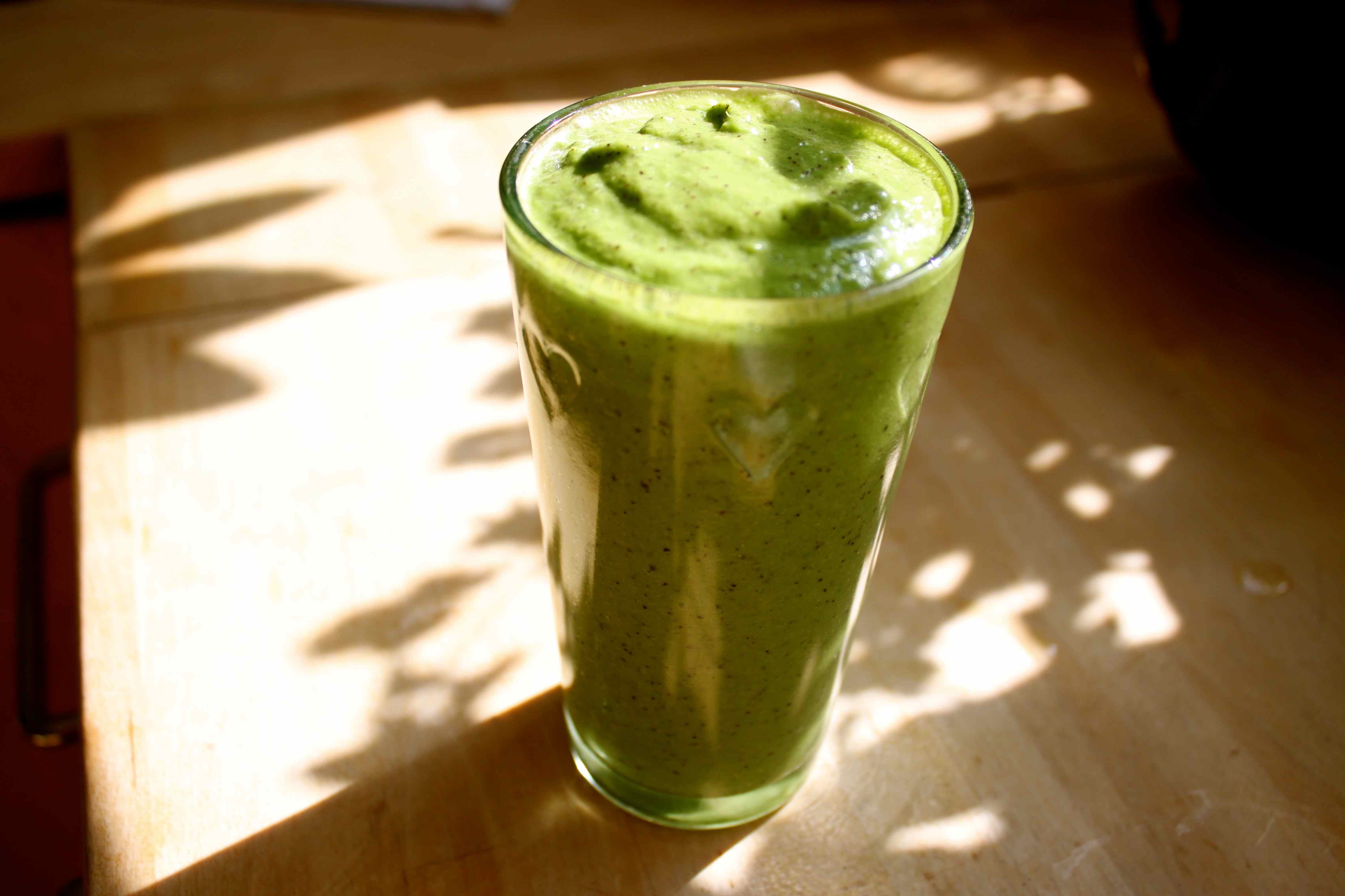 I was feeling much better today and the glorious sunshine streaming in to my bedroom got the day off to a beautiful start. I made a very green, green smoothie for breakfast which I started 2 hours before I had it by soaking 1 tbsp hemp seeds and 1 tbsp coconut in some water.