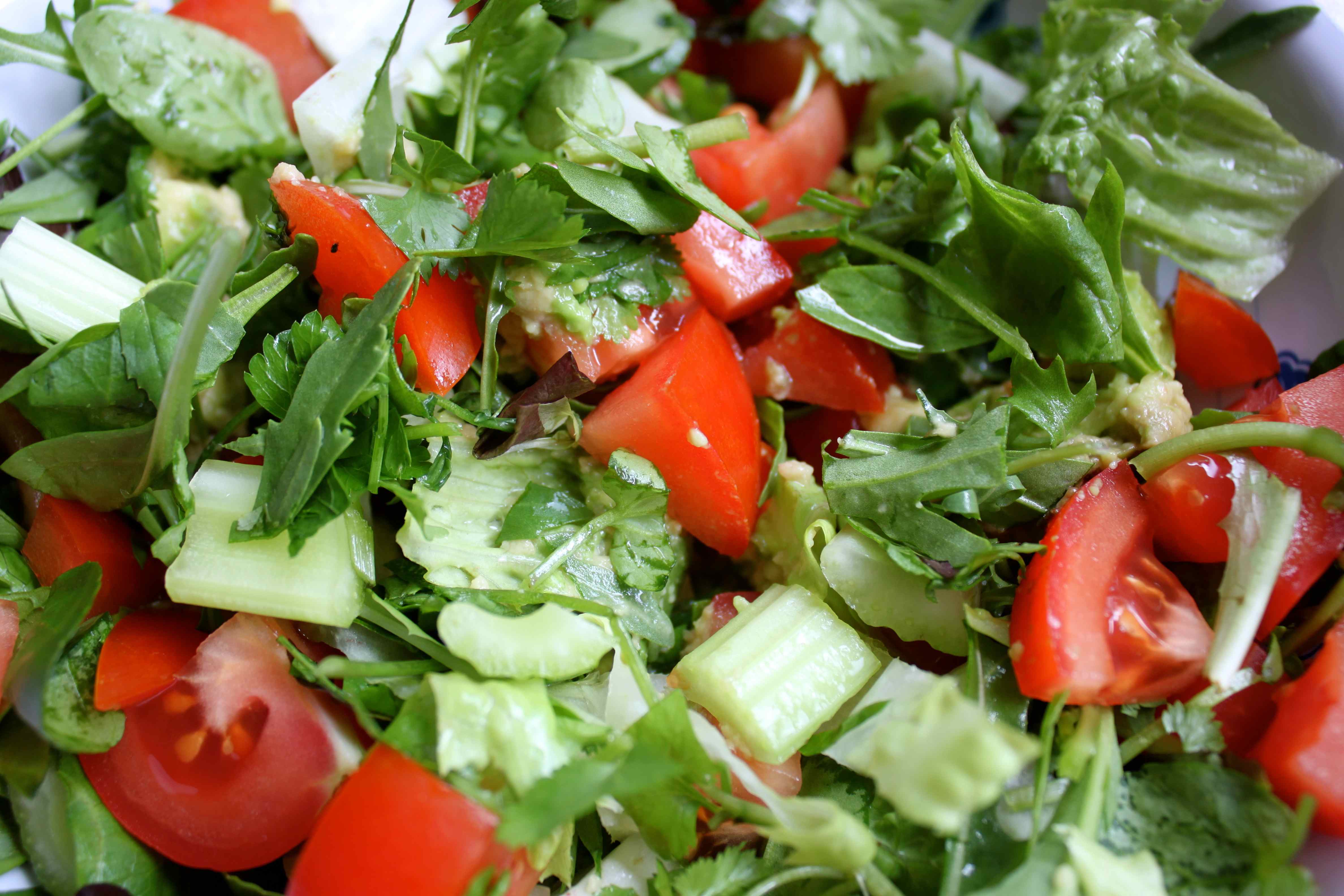 While all this food was dehydrating I made a very simple salad for lunch. Approximately 5 different salad leaves, coriander, mint, tomatoes, celery and half an avocado.