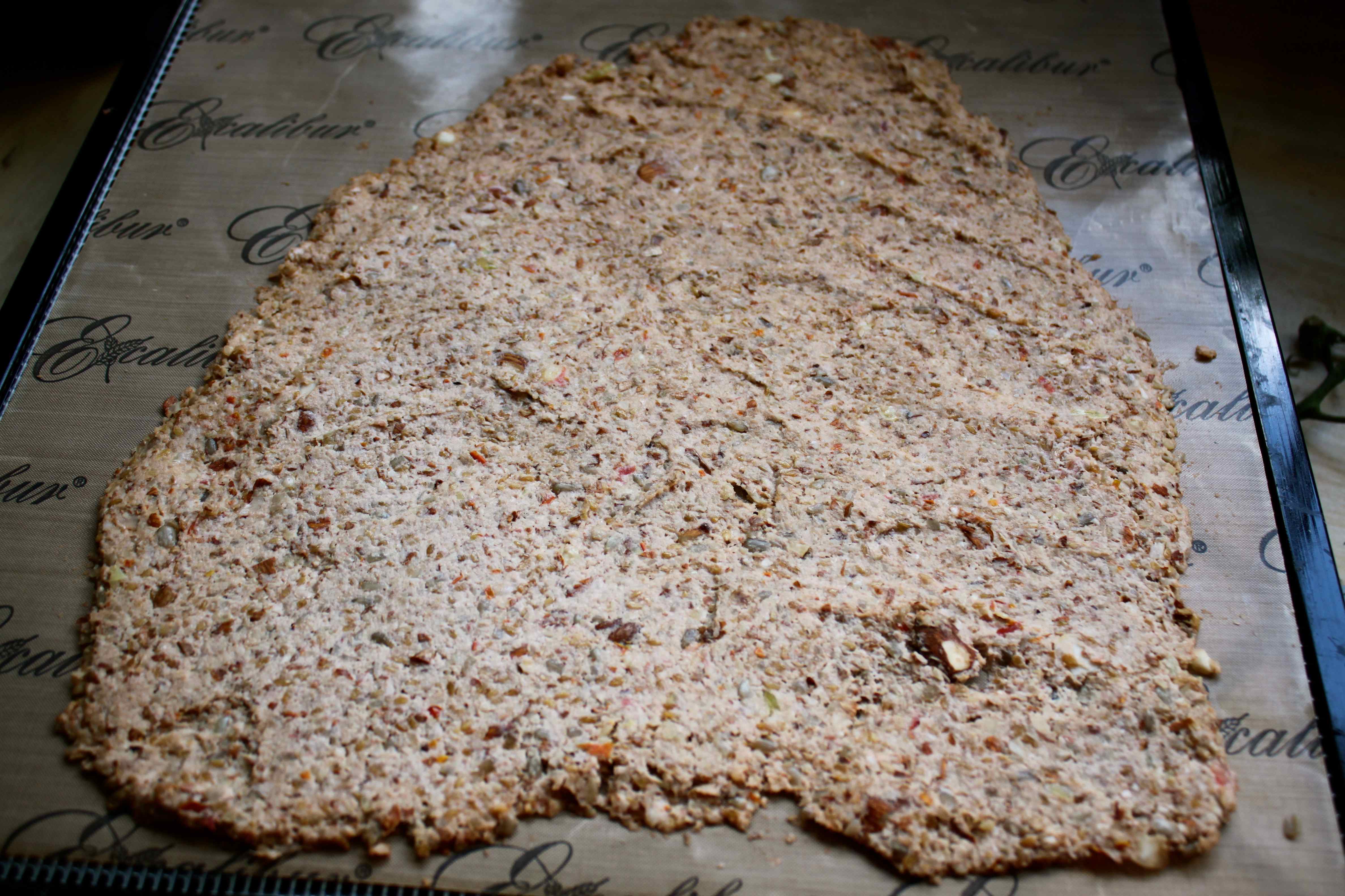 The next challenge was spreading the mixture thinly on a dehydrator sheet. It stuck to everything and kept lifting up but I got there in the end.