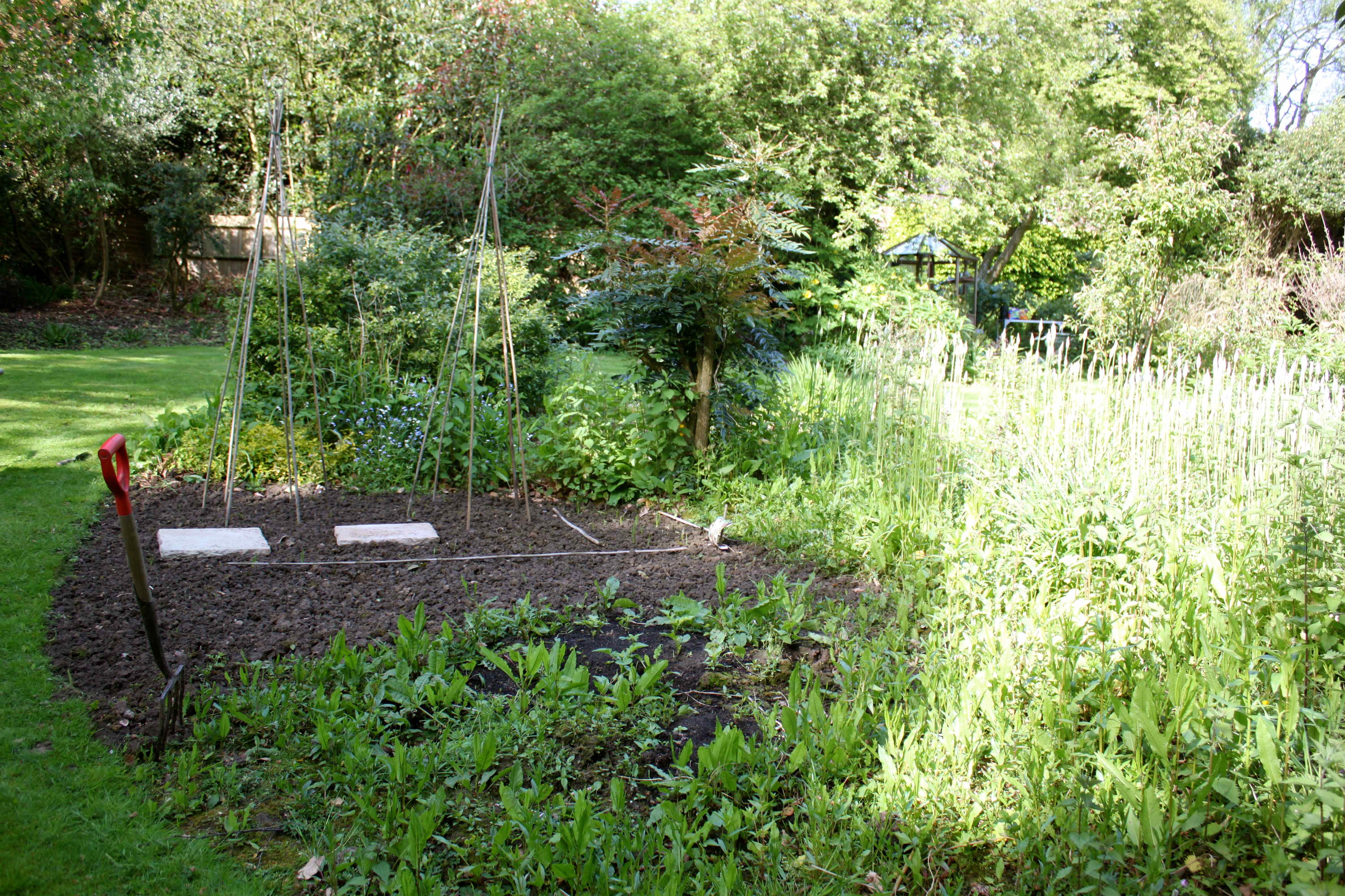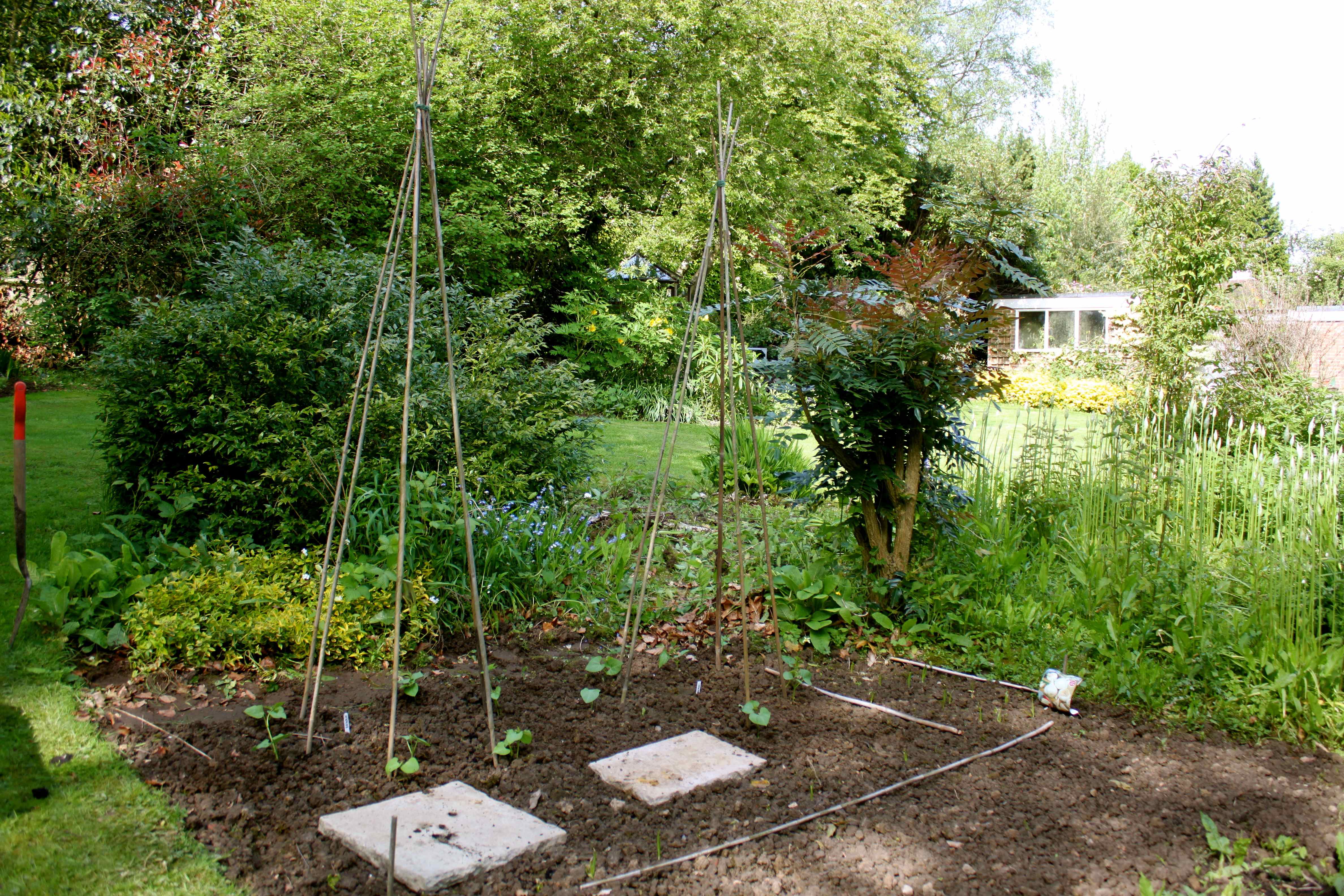 I have such big plans for this part of the garden. They involve a fruit cage and a new greenhouse. But for now, this overgrown area has had a section cleared and I planted out 2 types of French bean.