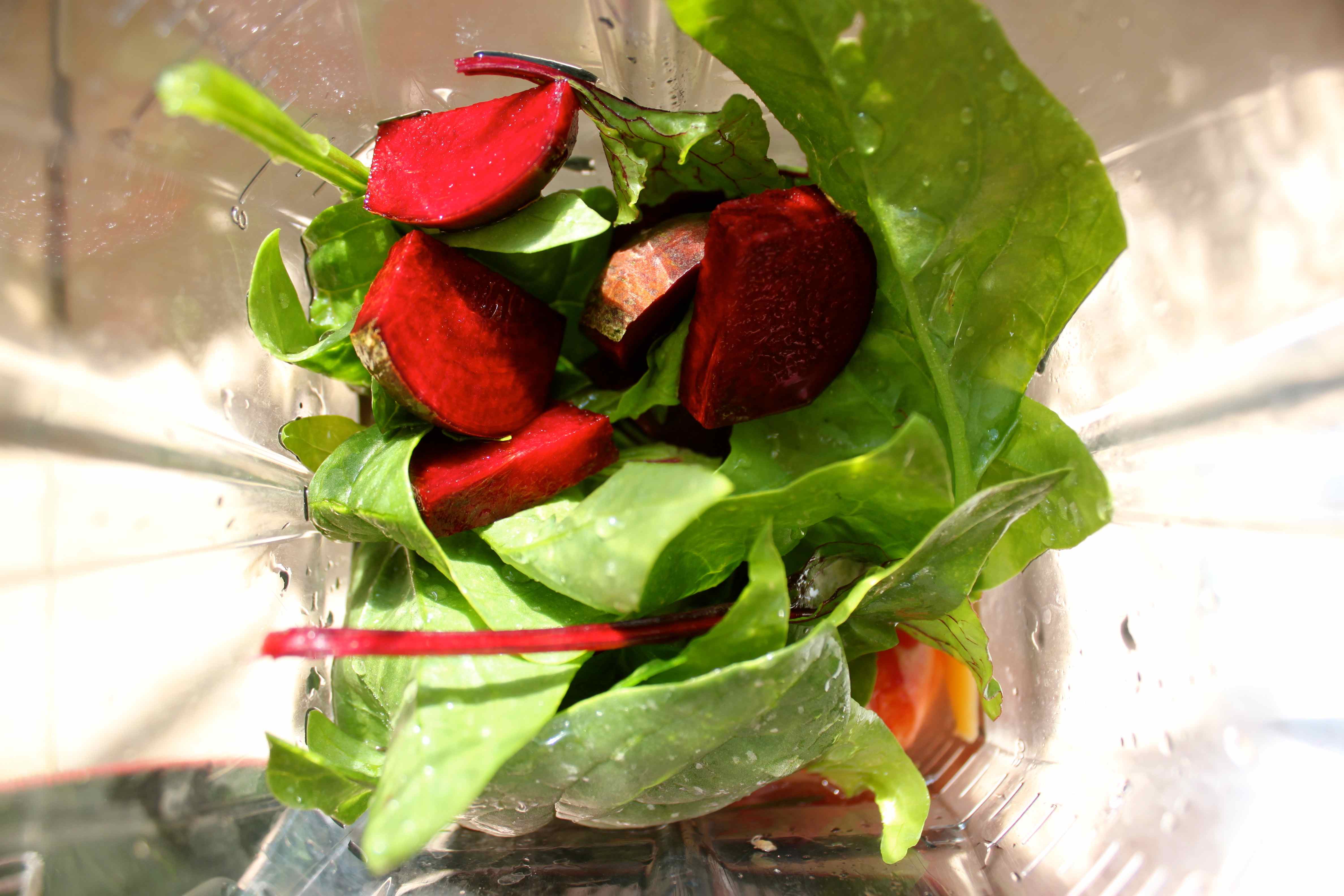 Breakfast time. Deja vue – spinach, beetroot leaves and bulb.