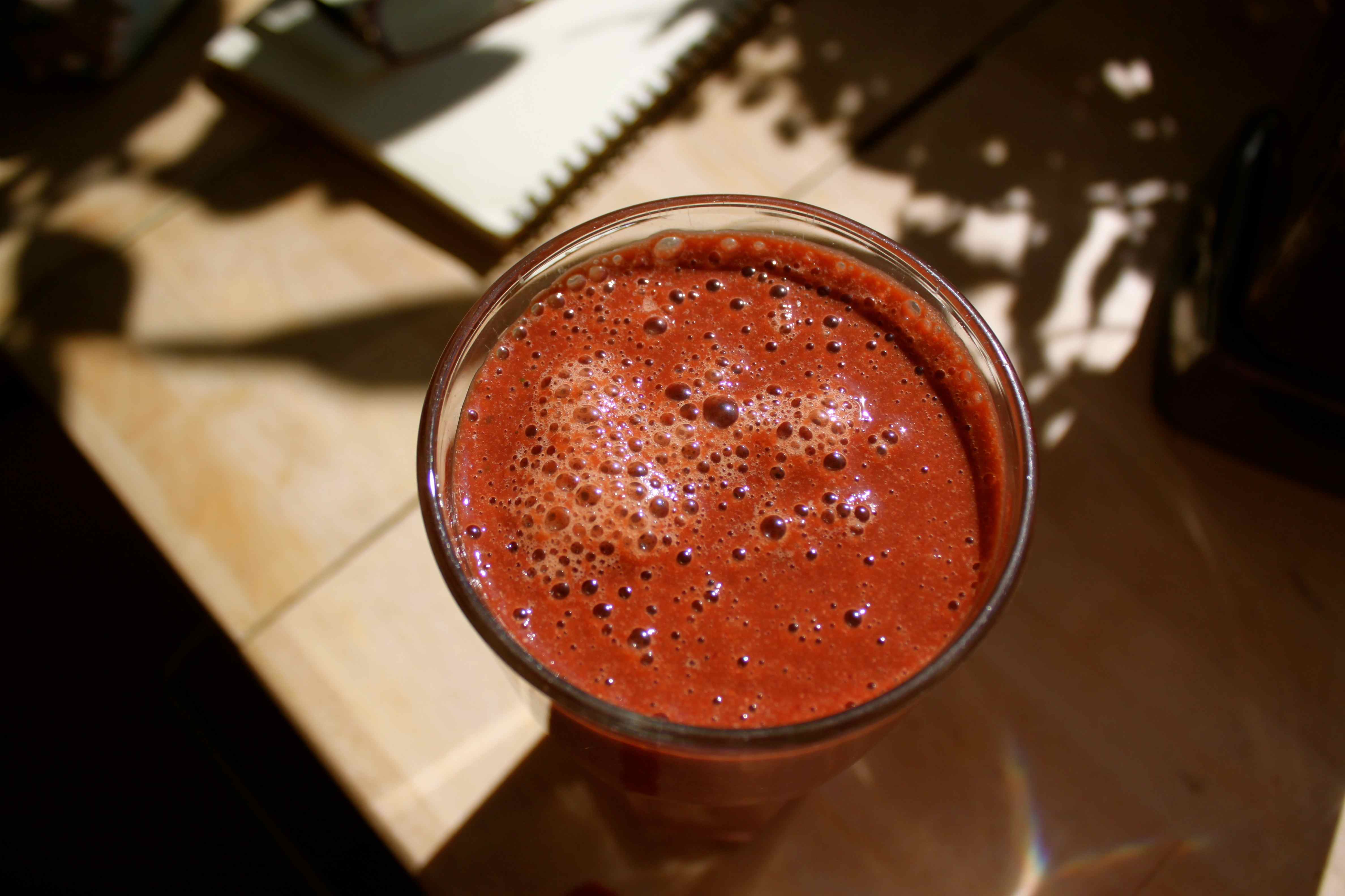 This was not as good as yesterday’s Sunshine Smoothie. I think the Alphonso mango I had yesterday was better and the Tahini worked better then the pumpkin seeds. But I still enjoyed it.