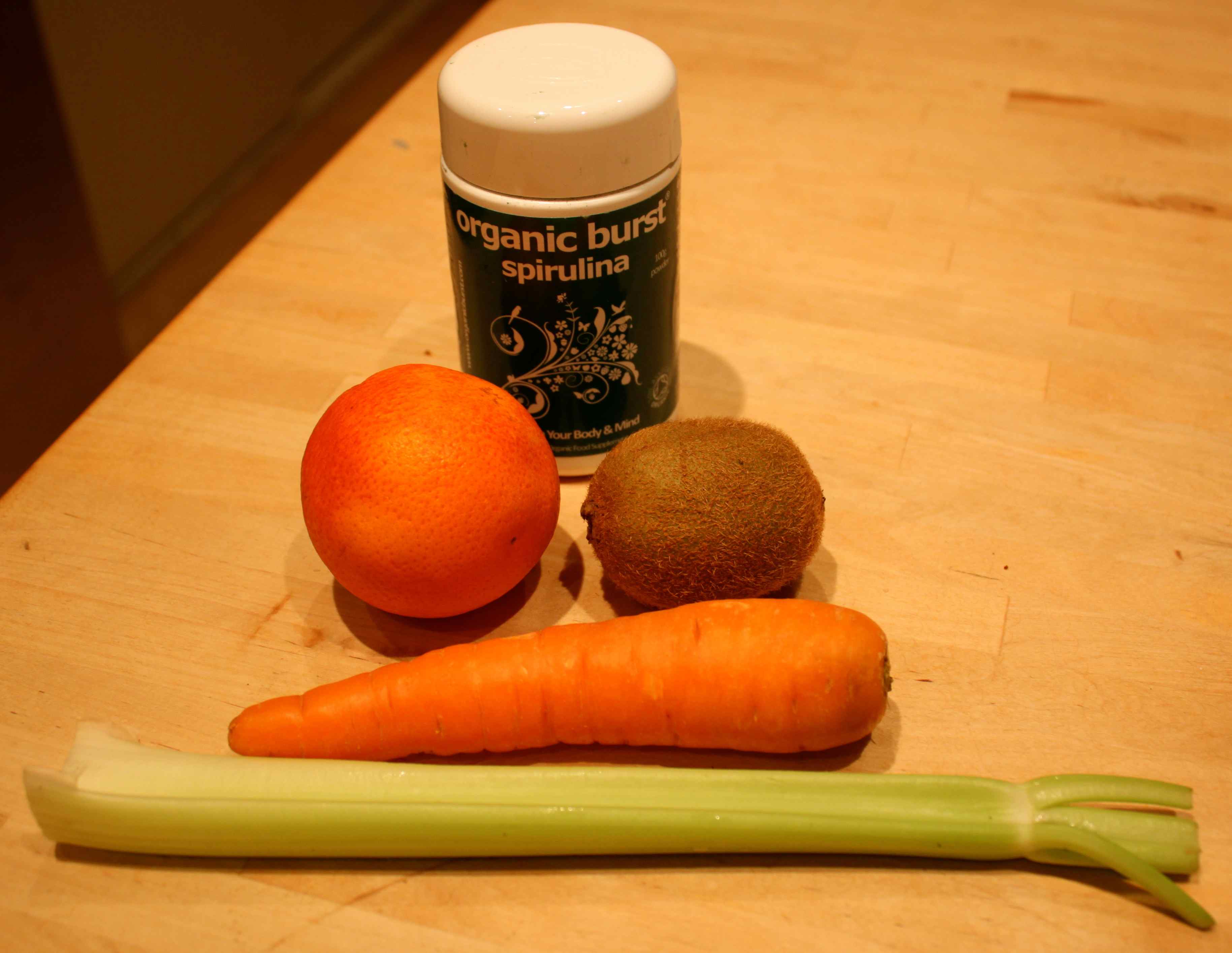 We didn’t get back until 9pm so I had a small juice for “supper” made with a blood orange, kiwi, carrot and celery. I added half a tsp of Spirulina too for extra nutrition.