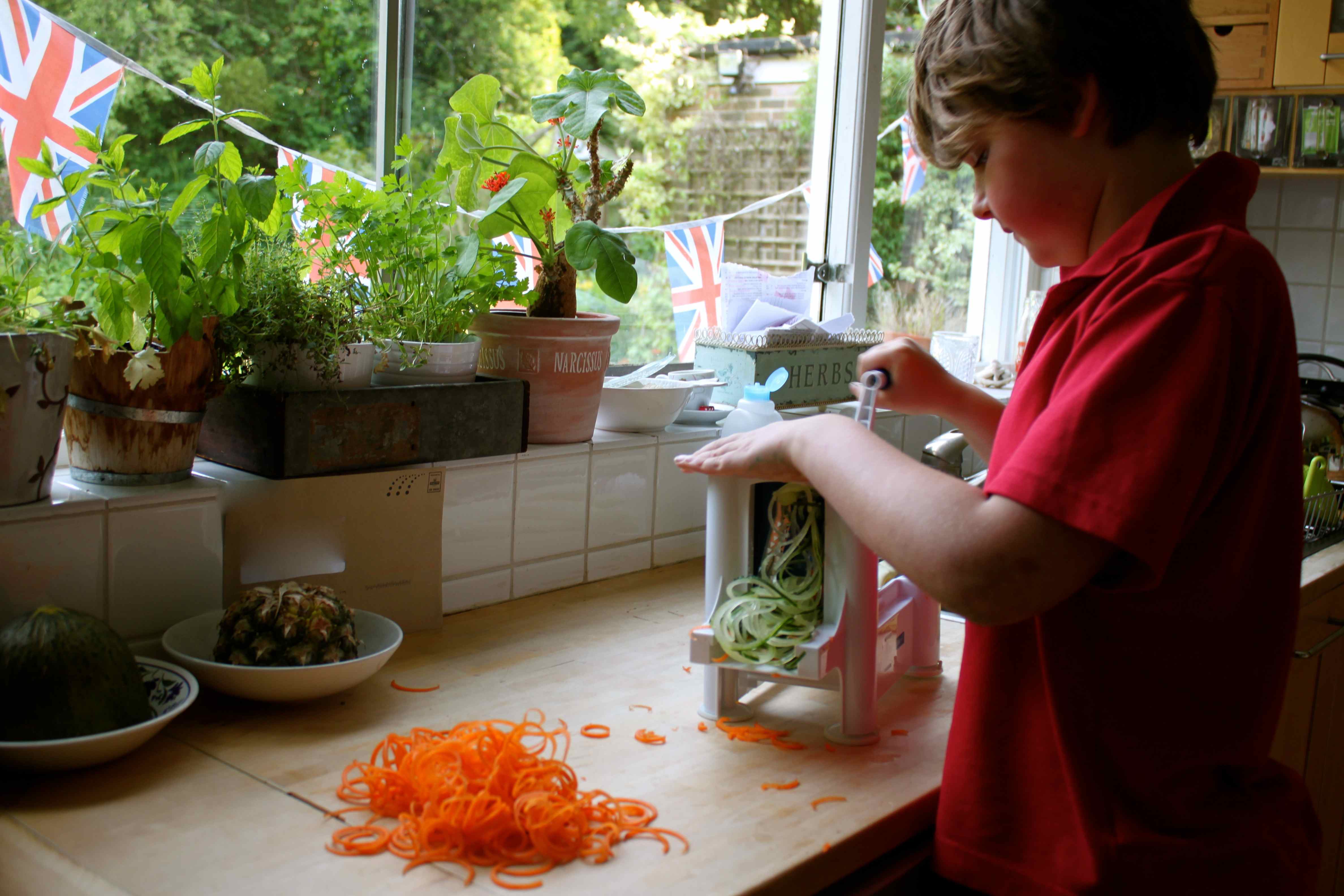 Today I tried my new kitchen gadget. The Spirali-Spiral-Slicer, made by Lurch and bought from my favourite Super Foods site, Detox Your World. It was £29.95 which seems good value to me for the fun we had with it and the fun I plan to have with it!