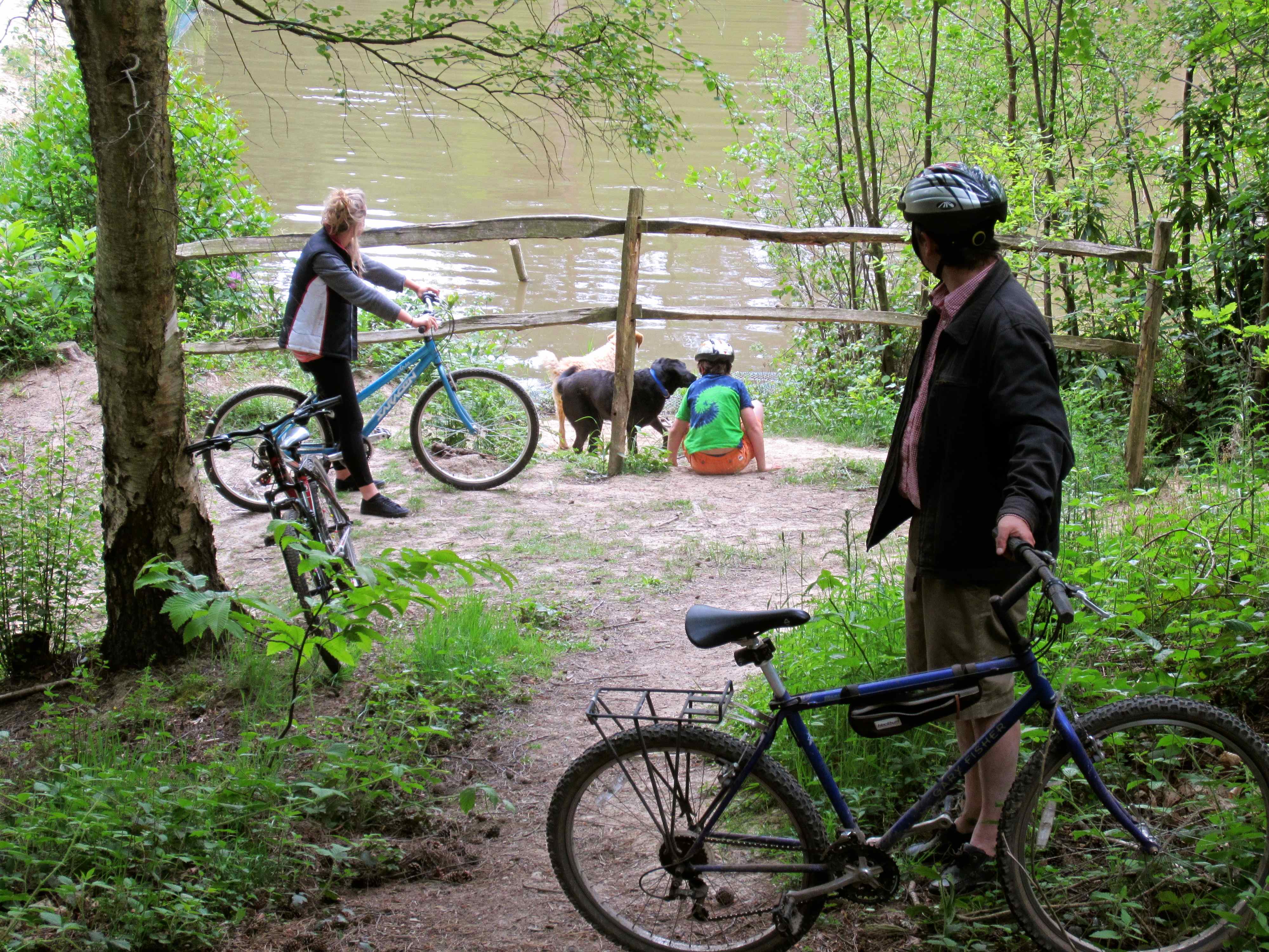 It was challenging and certainly got my pulse racing. The photo doesn’t do it justice but this part of the track was down then up a very steep hill. I confess I wimped out and walked down! Twice! Twice because when we got to the end we had all enjoyed it so much we went round in a big loop and did it again 🙂 It is a beautiful forest to have on your doorstep and I really enjoyed being in it today.