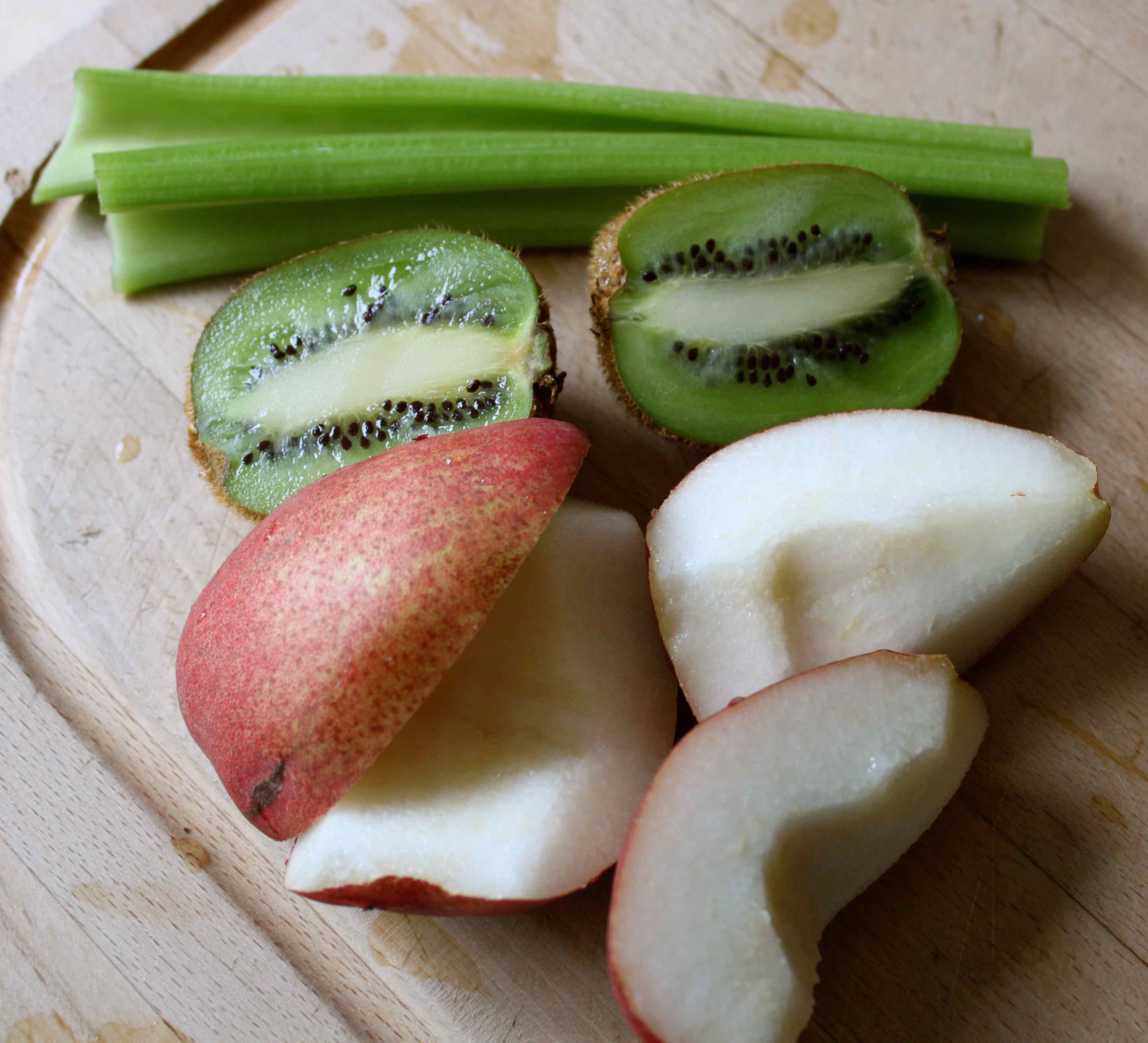 After a lot of washing and cutting away bit I didn’t fancy, I had a large pile of fresh picked leaves ready for juicing.