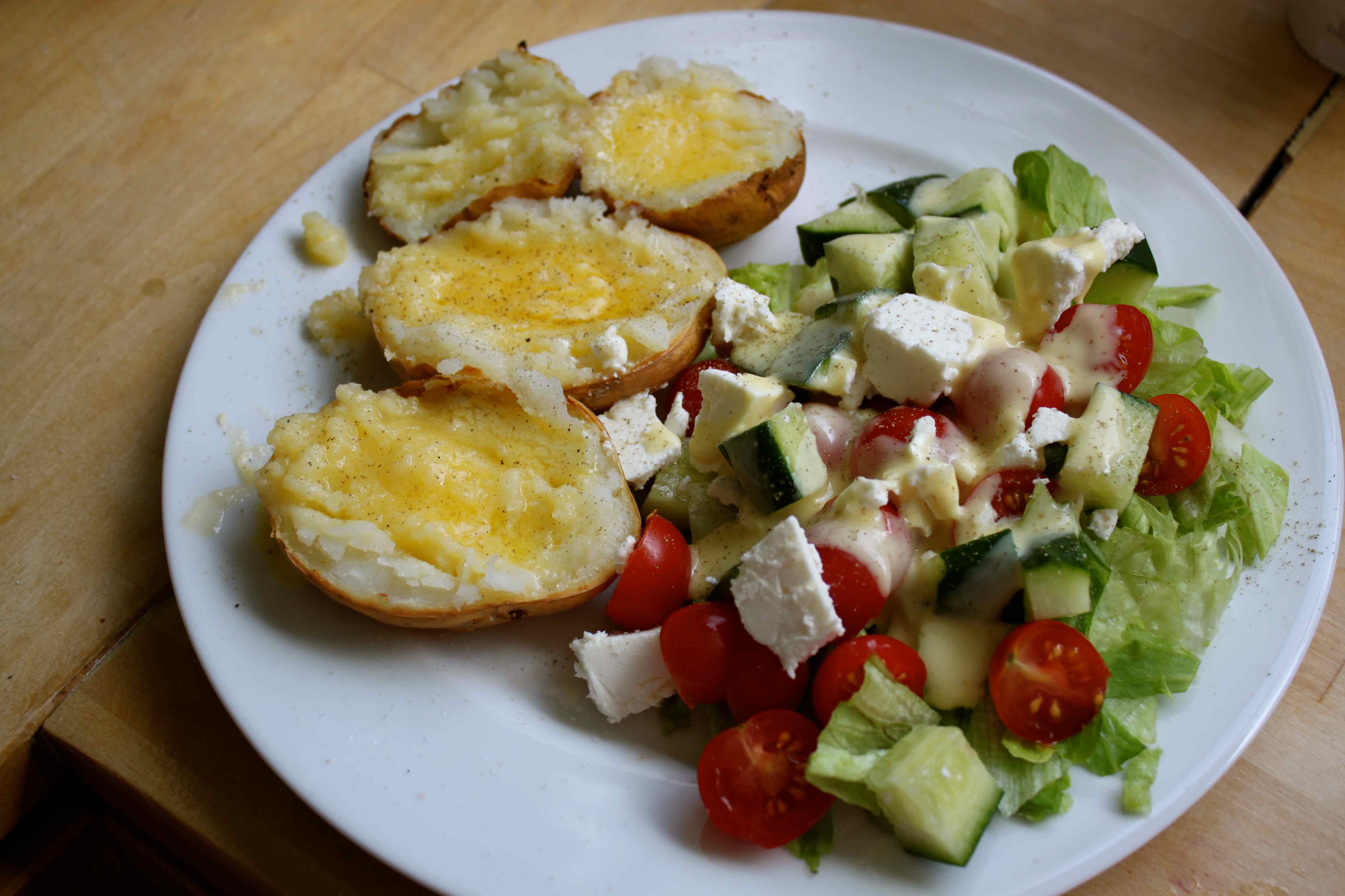 Lunch was a Feta cheese salad with baked potatoes. I was really craving the carbs today.