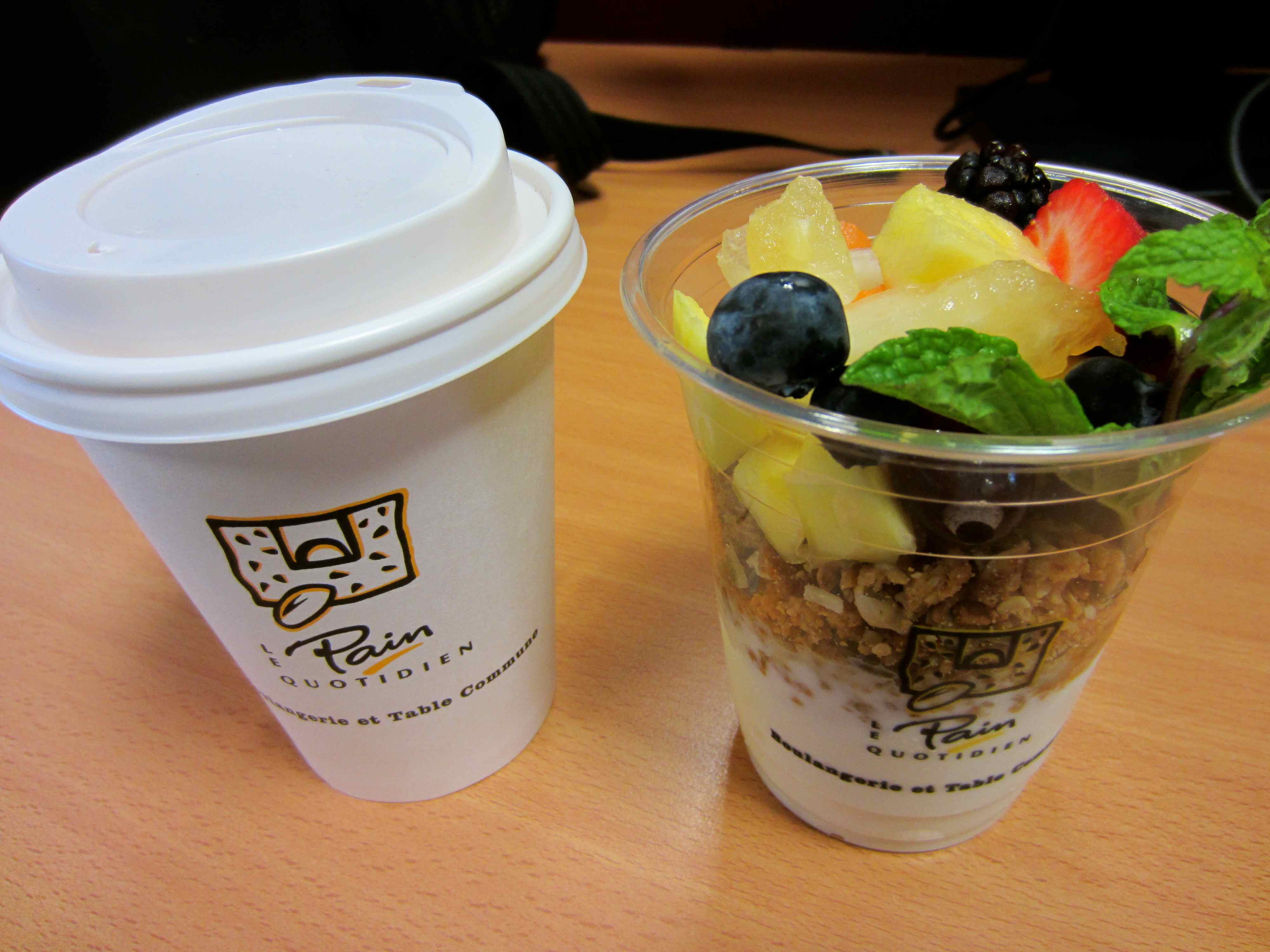 I have not been in to Le Pain Q for a while so I ventured in today and selected a skinny latte and a granola parfait. Taken in to the office and eaten at the desk as usual.