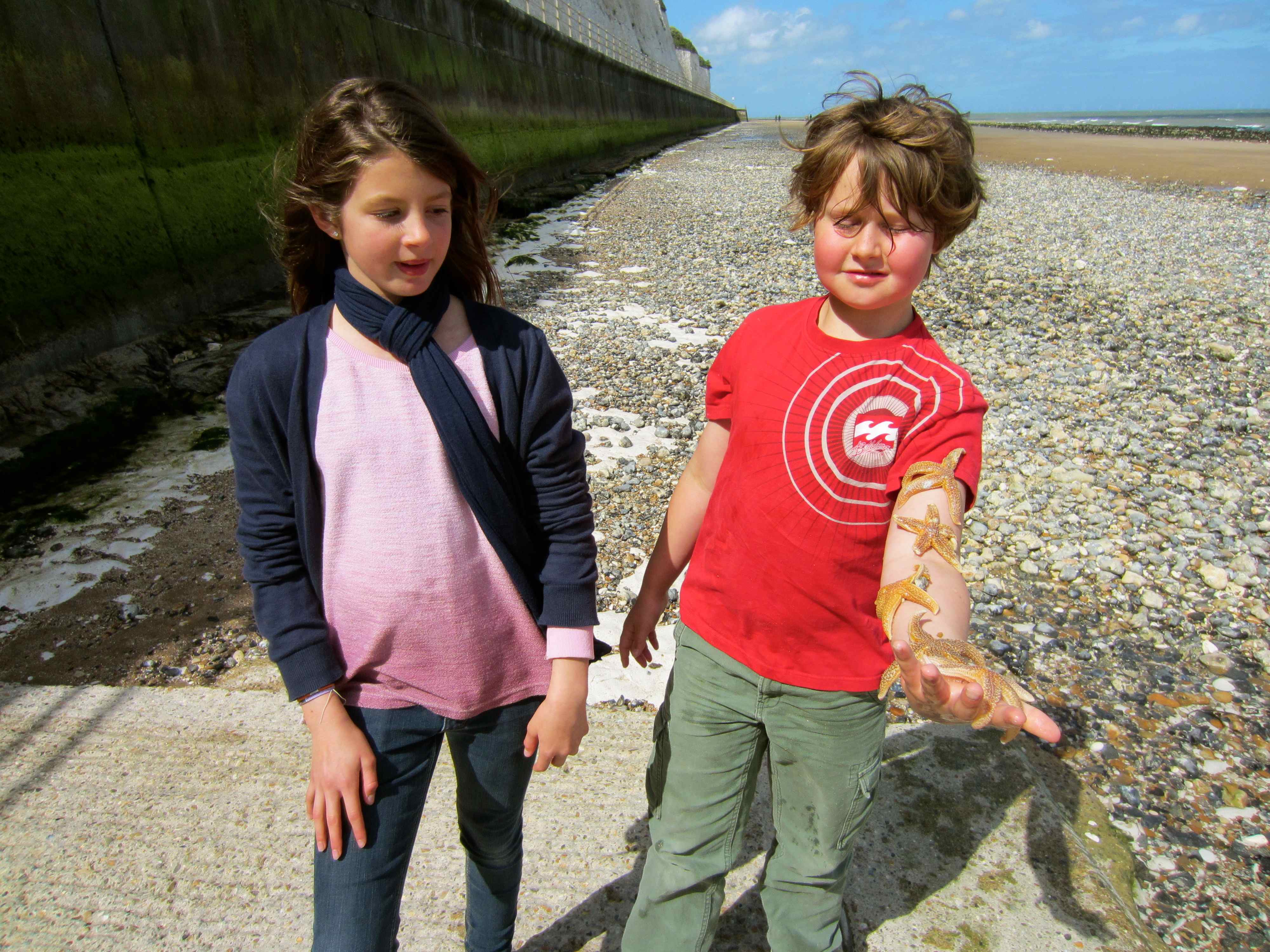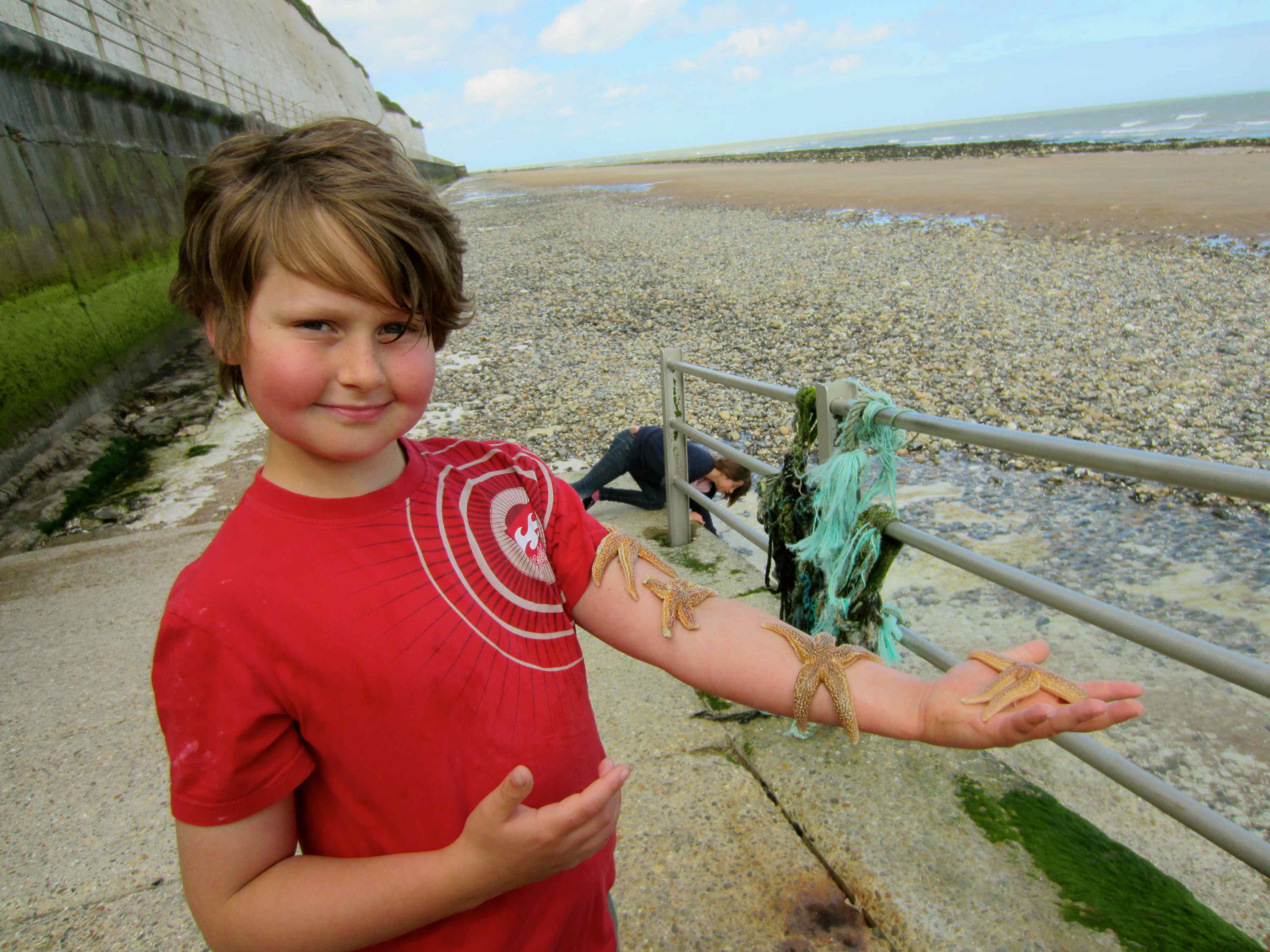 Starfish! Maddi spotted them and they spent a very happy time on a mission to seek and save the starfish.