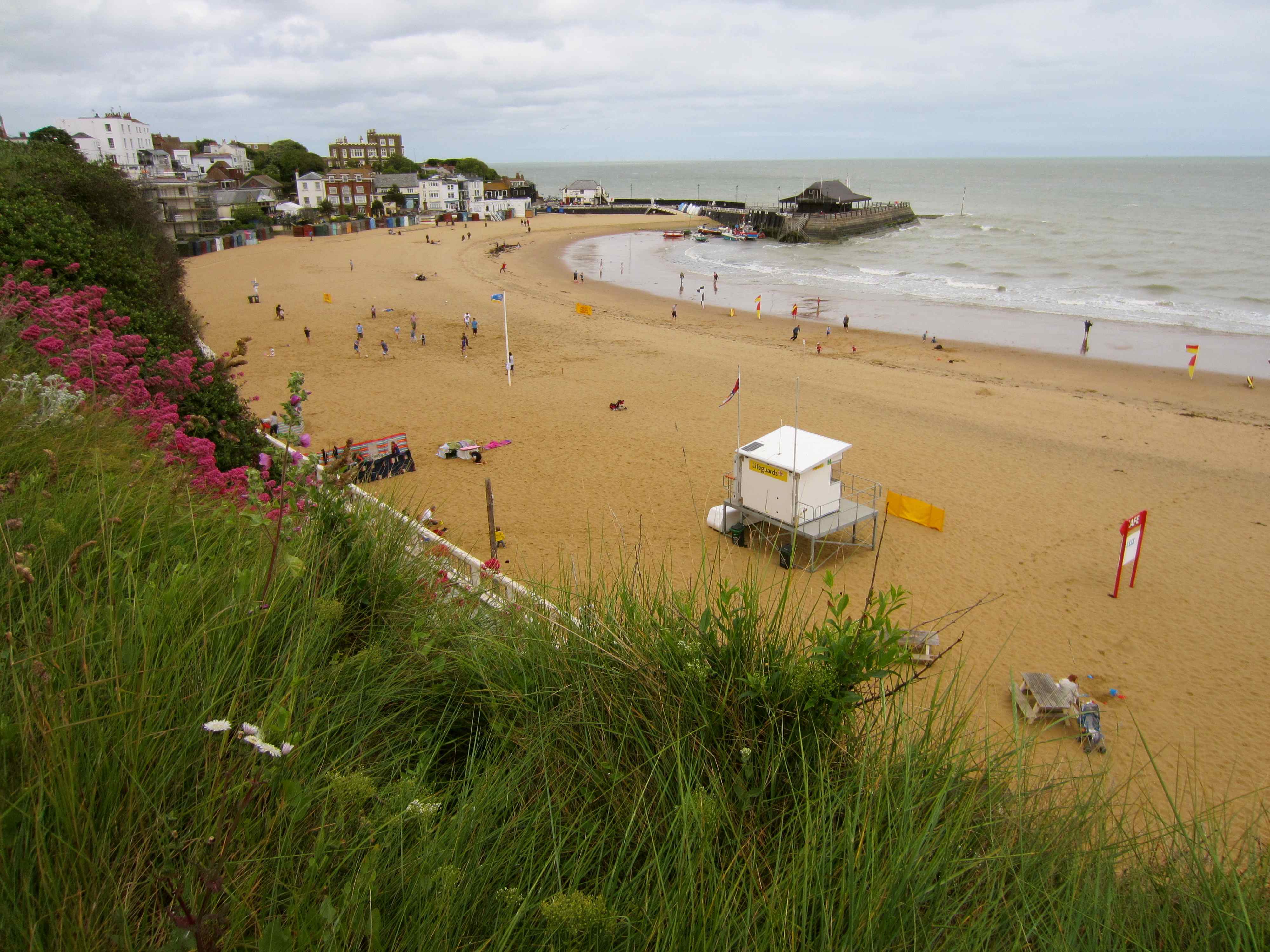 Several of us had juniper berry poisoning but we set off with vigour from Ramsgate towards Broadstairs. It was high tide so we headed up to the top of the cliff tops.
