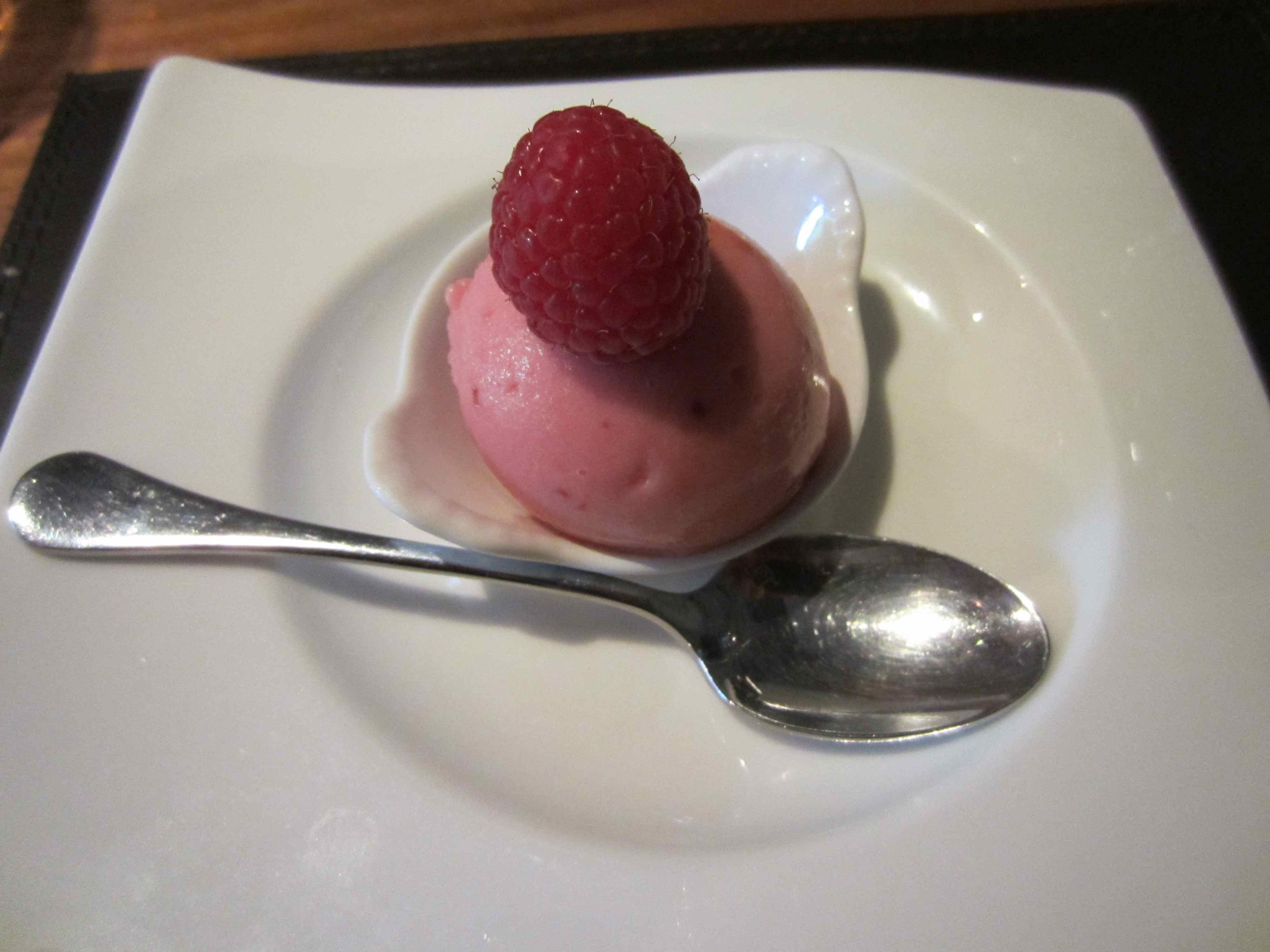 The restaurant then provided a raspberry sorbet which was very small (that is a teaspoon) but perfectly formed and full of flavour.