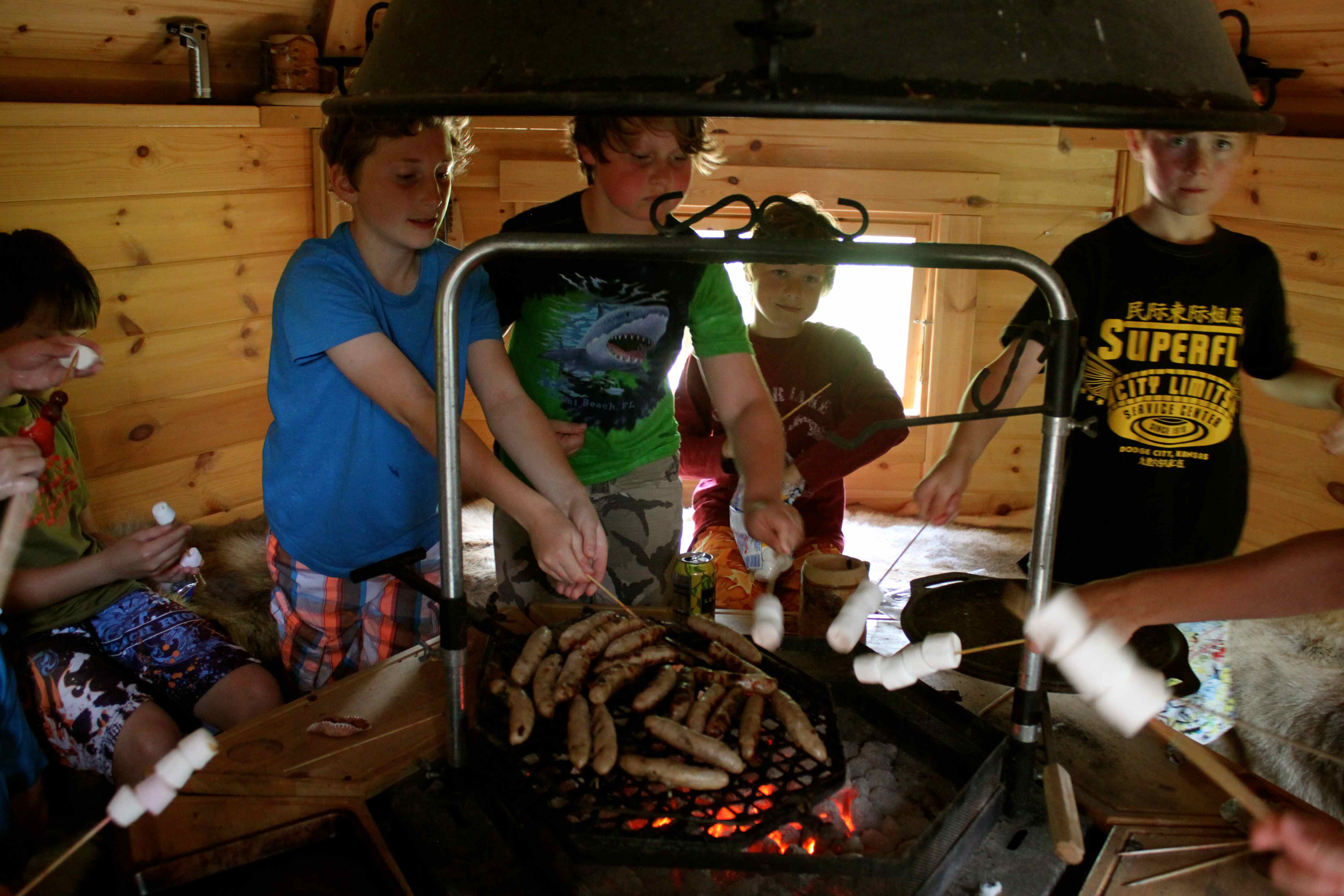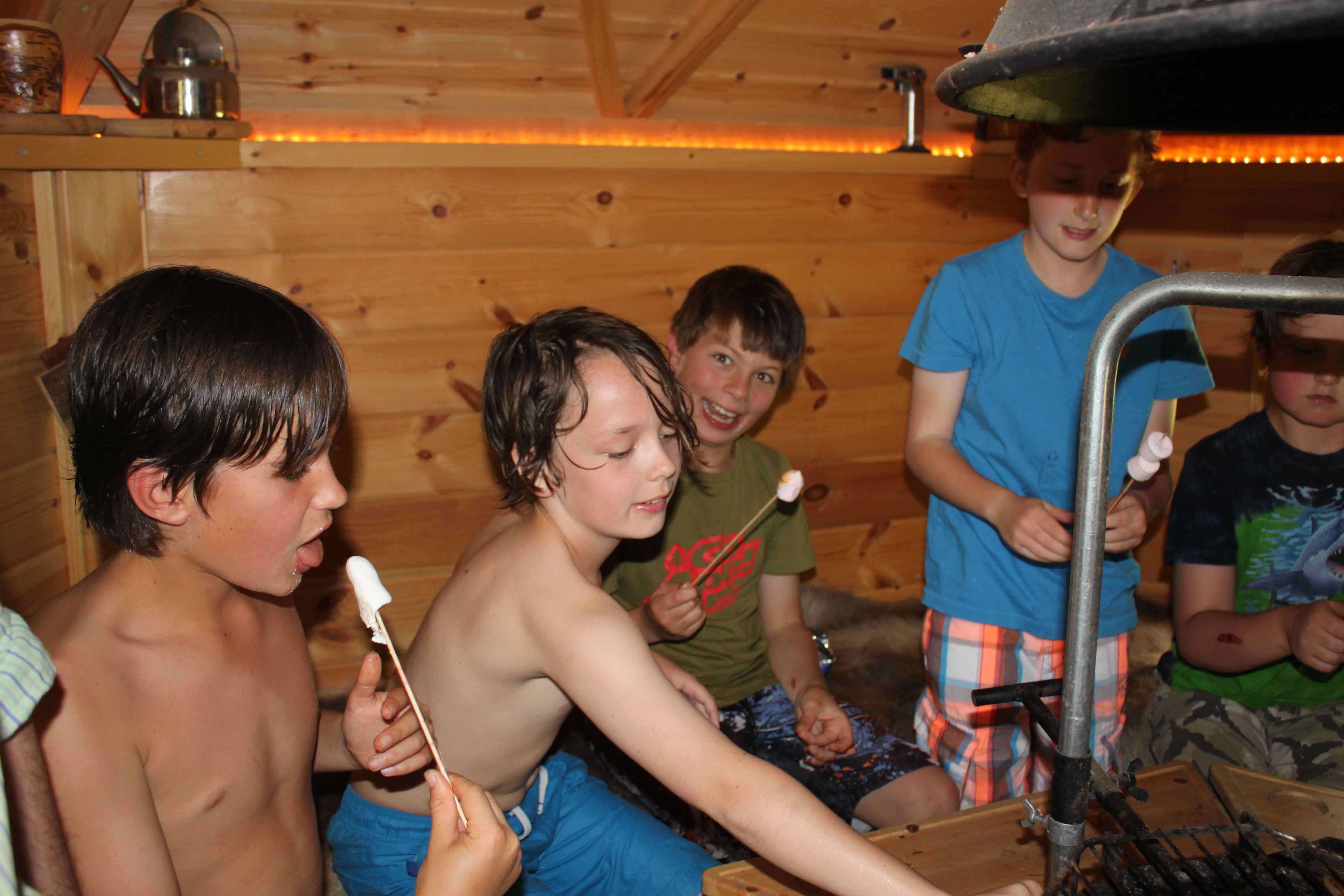They had chicken kebabs but then couldn’t wait for the sausages before tucking in to the marshmallows.