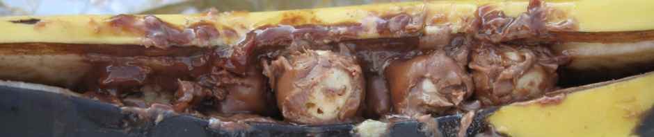 I hadn’t eaten all day since the smoothie so I did enjoy a Malteser banana. I cut a long slit in the side of the banana, squished some Maltesers in, wrapped it in foil and popped it on the BBQ for about half an hour. The banana and Maltesers had gone all squidgy – yummy.