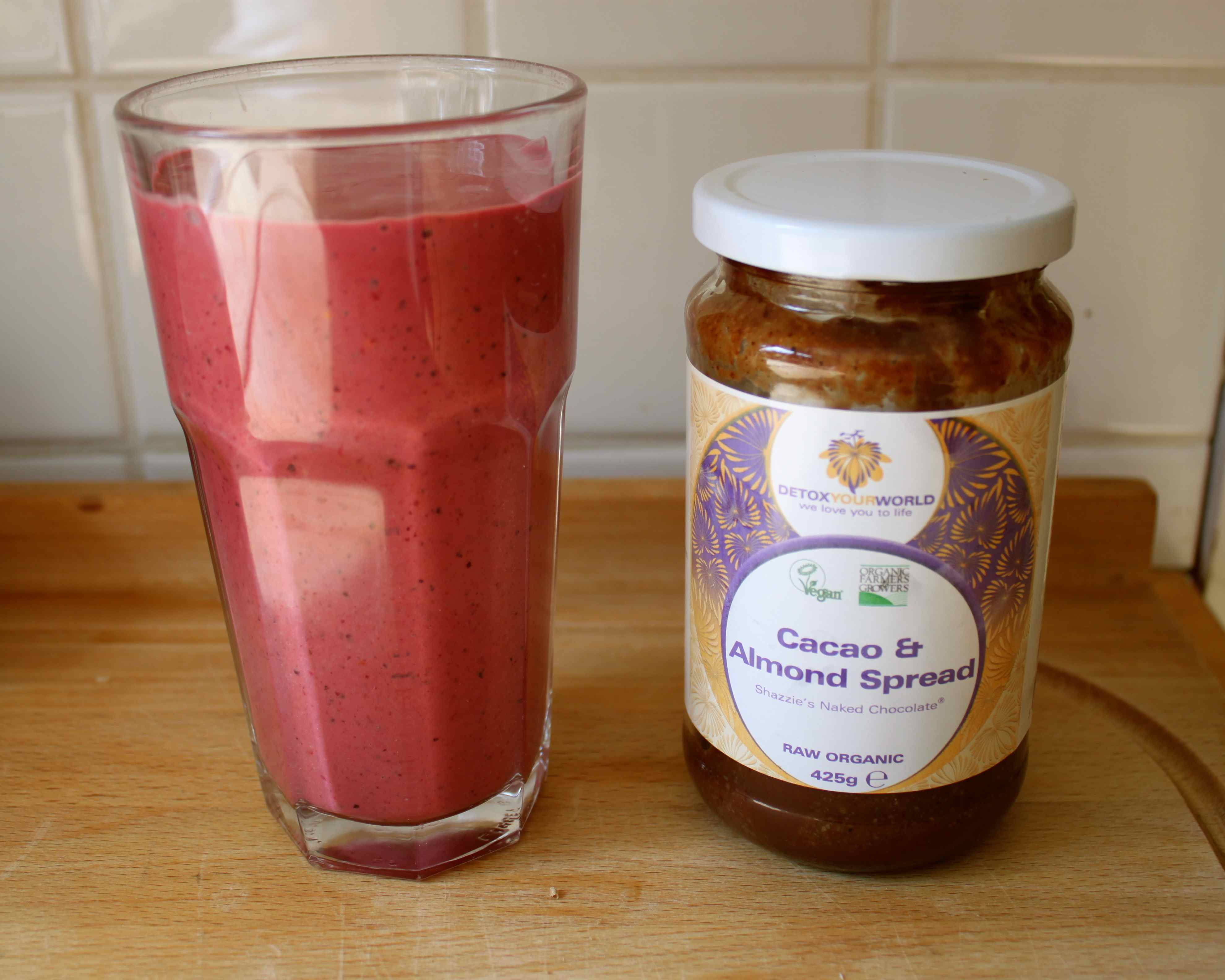 Today was going to be busy so I had a healthy start. I made a smoothie for myself and Harvey with frozen berries, coconut water and cacao and almond butter.