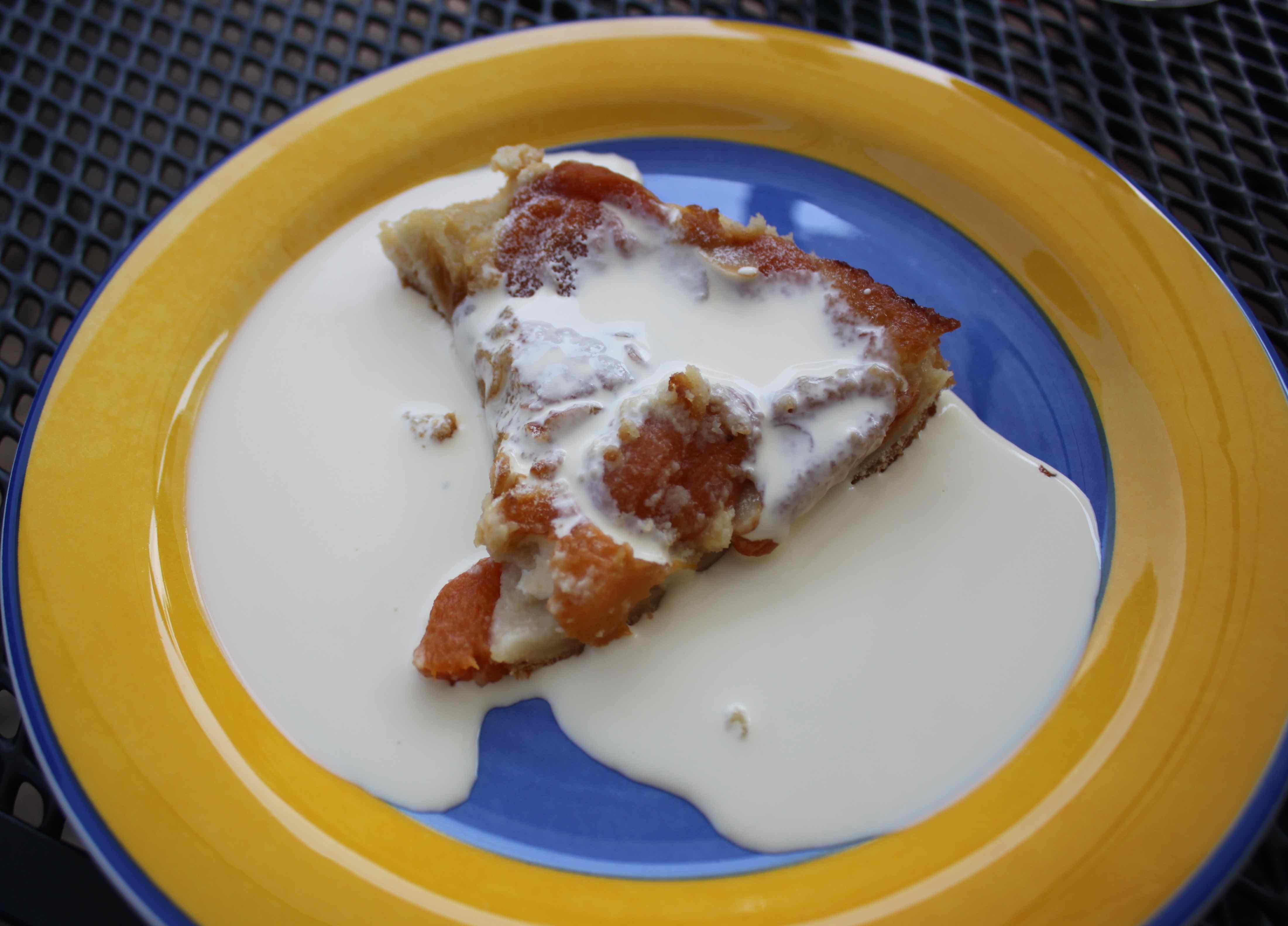 Followed by apricot tart and cream. There is always cream in Dad’s fridge!