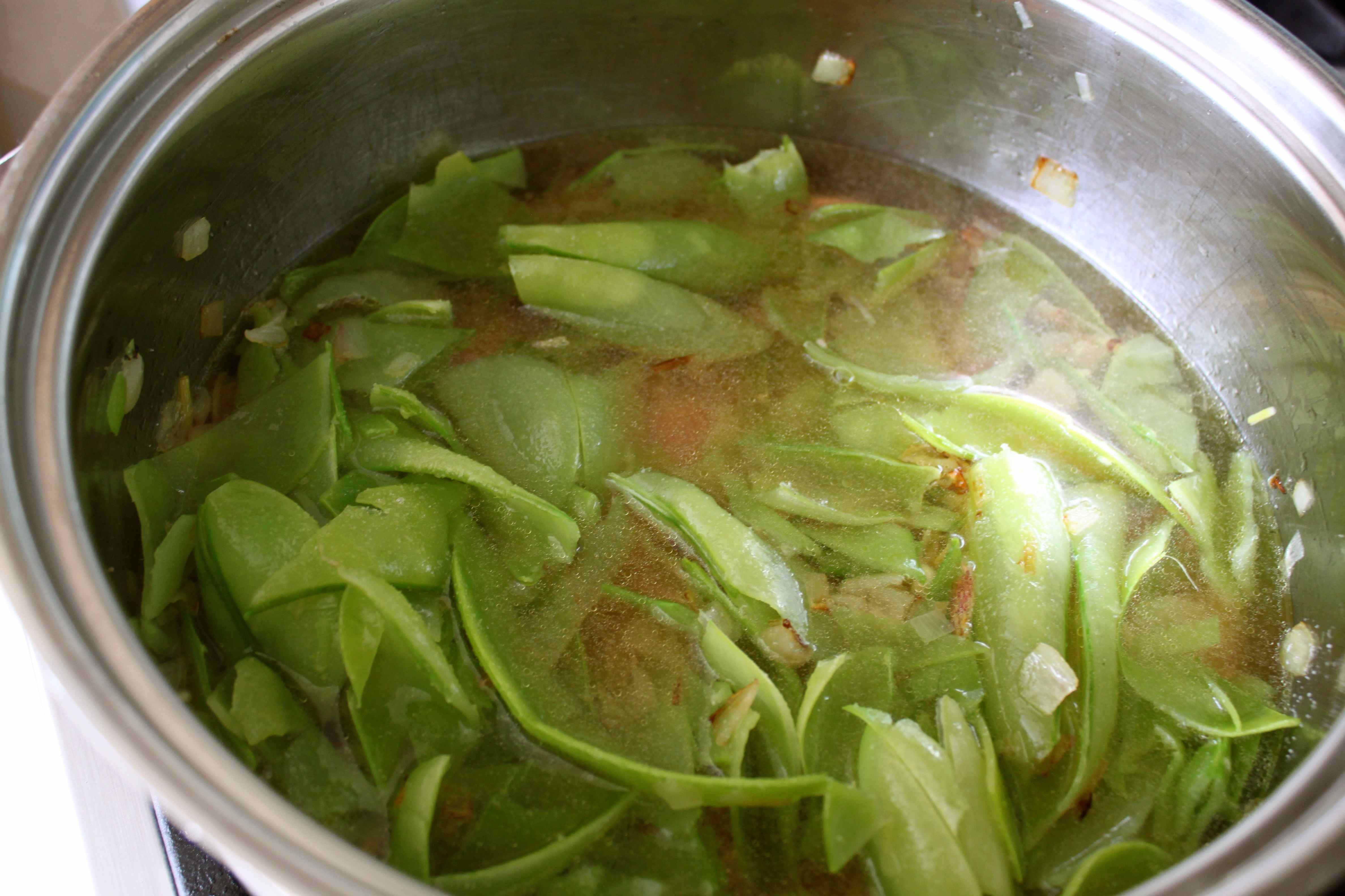Roughly chopped and added the pea pods.